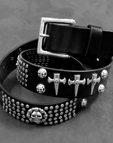Style: Badass Leather Metal Belt Punk Skull Motorcycle Belt Leather Round Belts For Men