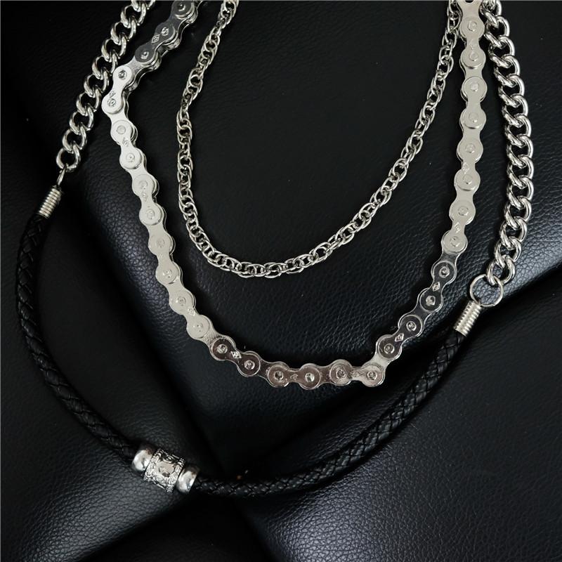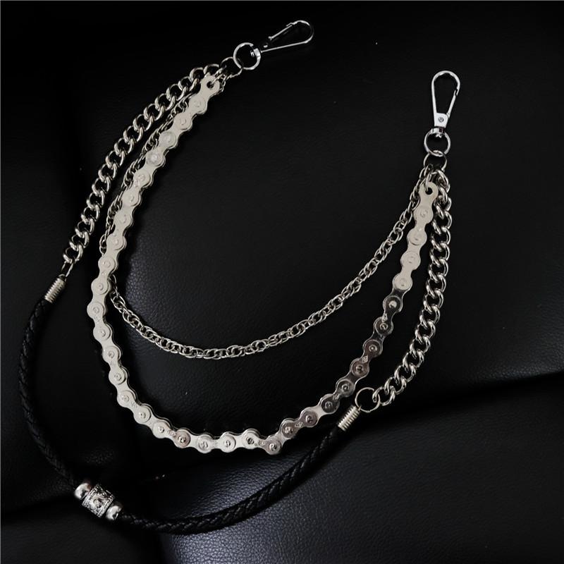 Style: Badass Mens Leather Triple Stainless steel Pants Chain Biker Wallet Chain For Men
