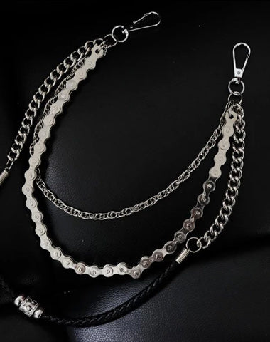 Design: Badass Mens Leather Triple Stainless steel Pants Chain Biker Wallet Chain For Men