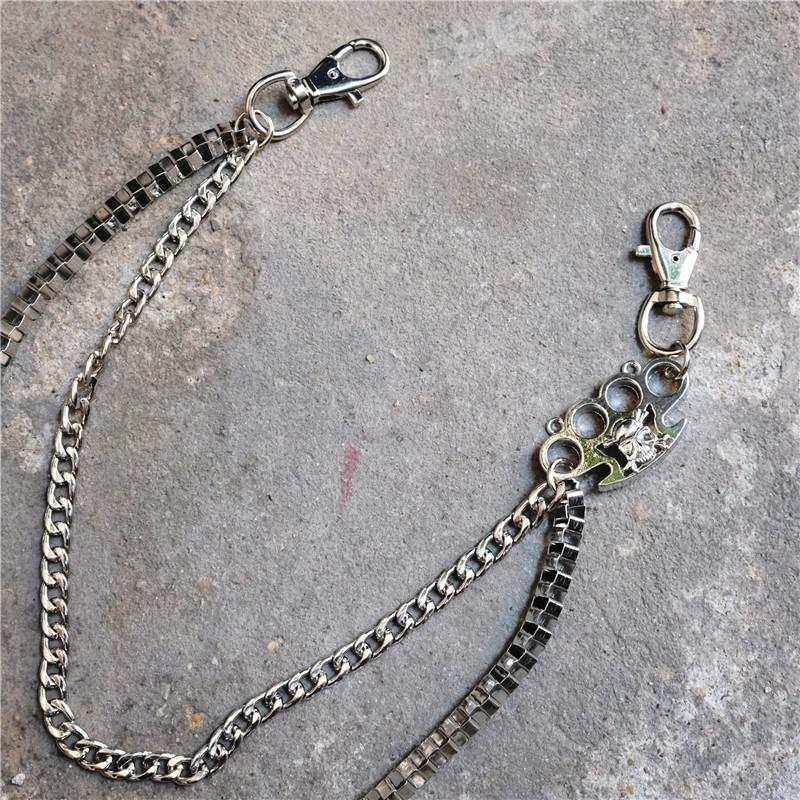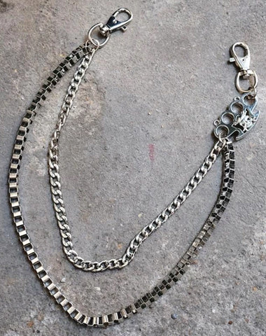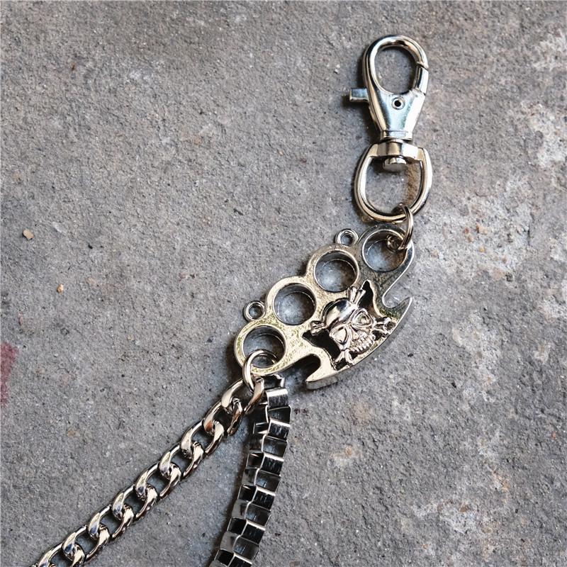 Design: Badass Men's Silver Finger Rings Skull Double Pants Chain Punk Biker Wallet Chain For Men