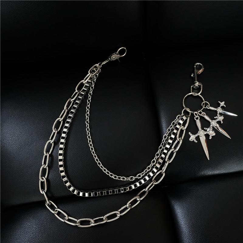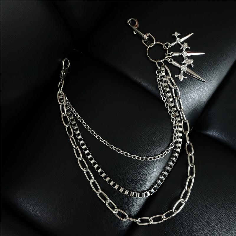 Style: Badass Silver Punk Sword Triple Biker Pants Chain Wallet Chain For Men
