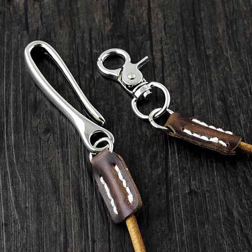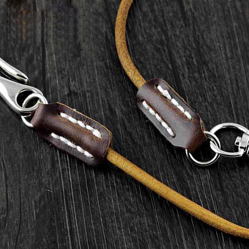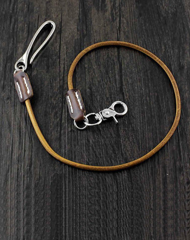 Style: Badass Tan Handmade Leather Long Wallet Chain Cool Punk Rock Biker Wallet Chain Trucker Wallet Key Chain for Men