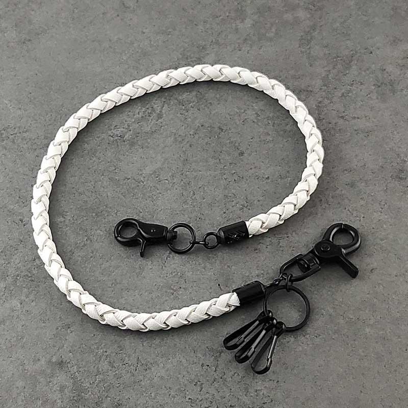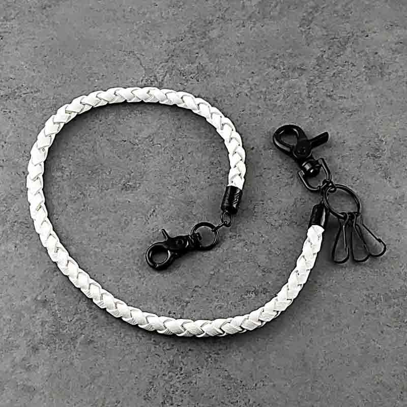 Style: Badass White Leather Braided Long Wallet Chain Cool Punk Rock Biker Trucker Wallet Chain Trucker Wallet Chain for Men