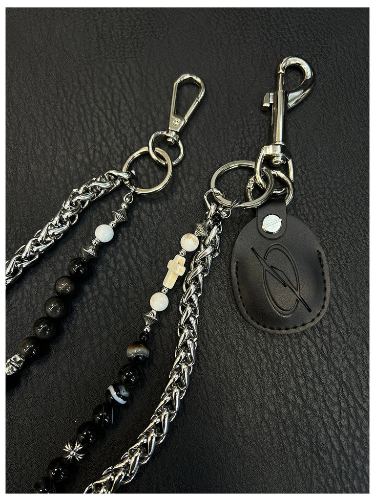 Style: Black Ball Pants Chain Ball Wallet Chain Obsidian Stone Double Beaded Wall