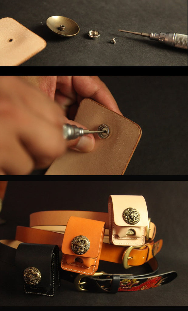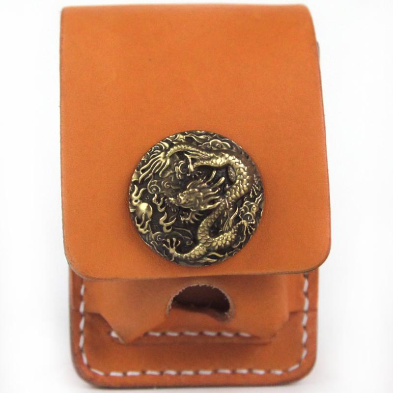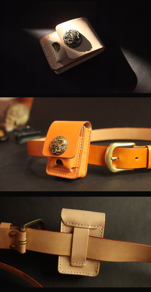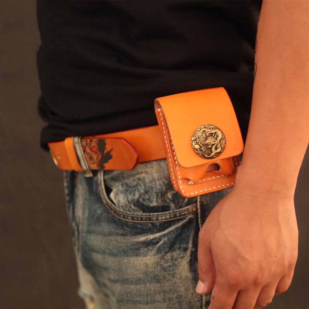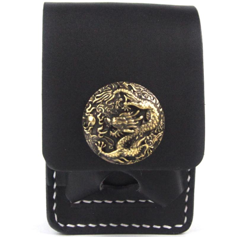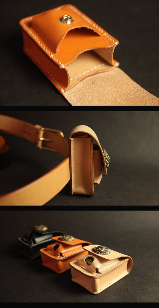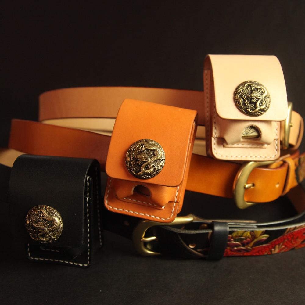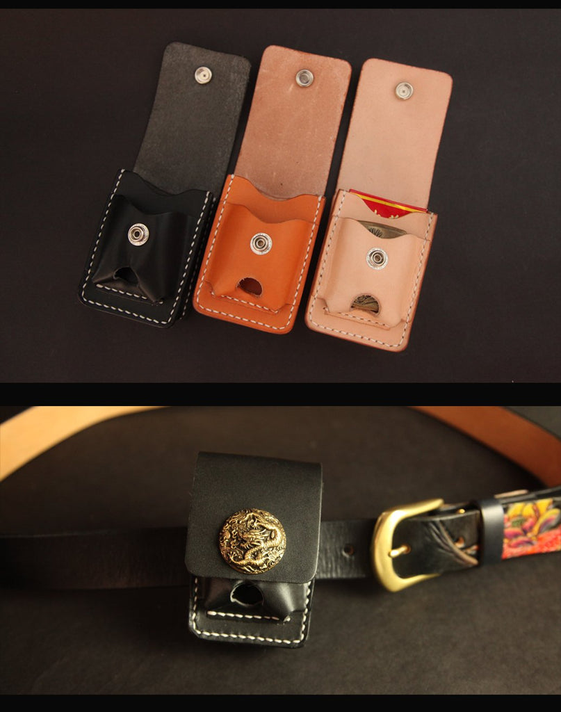 Black Handmade Leather Mens Cool Belt Cigarette Case Holder Cigarette Lighter Case For Men