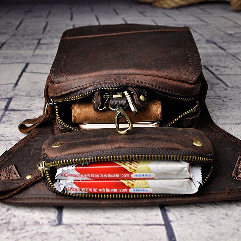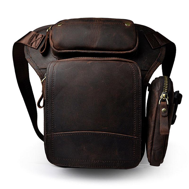 Design: Biker Mens Leather Drop Leg Bag Waist Bag Belt Pouch Pack Side Bag for Men