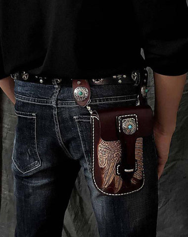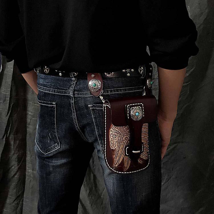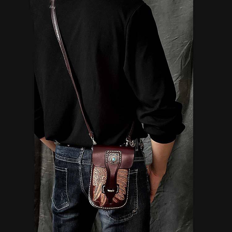 Design: Black Badass Mens Leather Waist Bag Side Bag Brown Chest Bag Crossbody Bag Belt Bag for Men