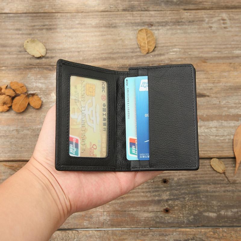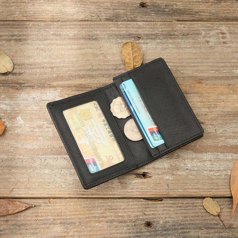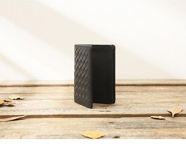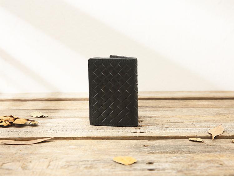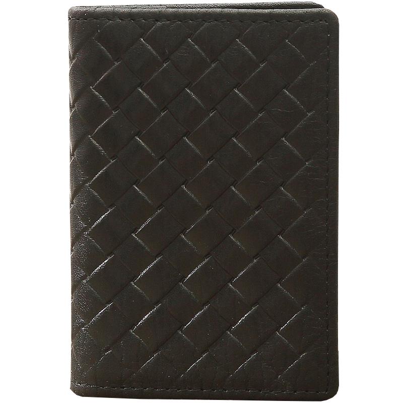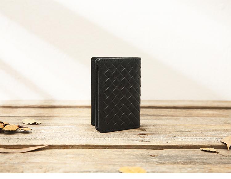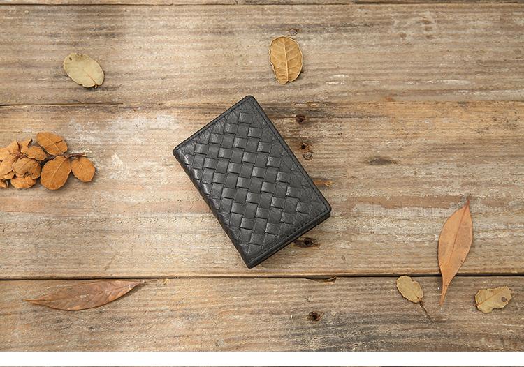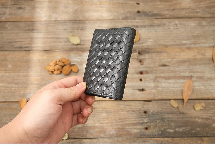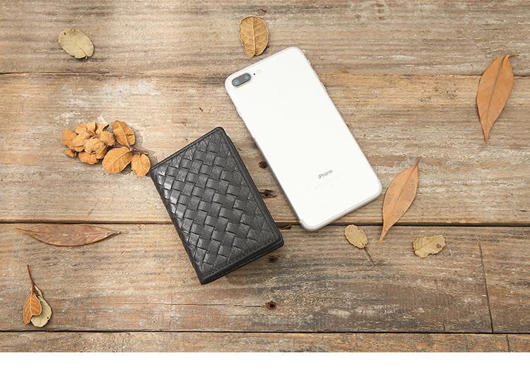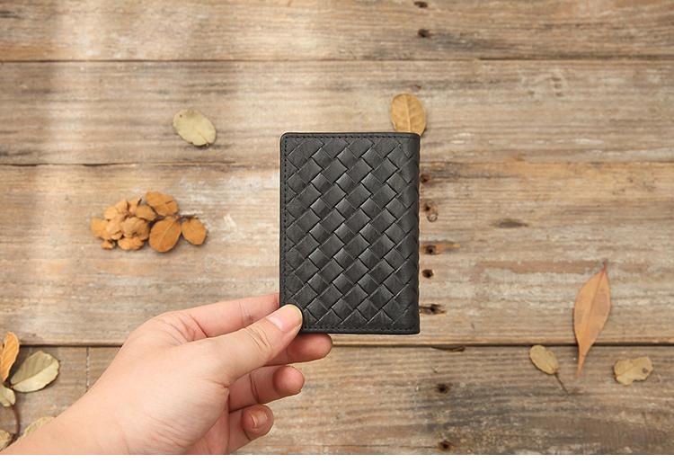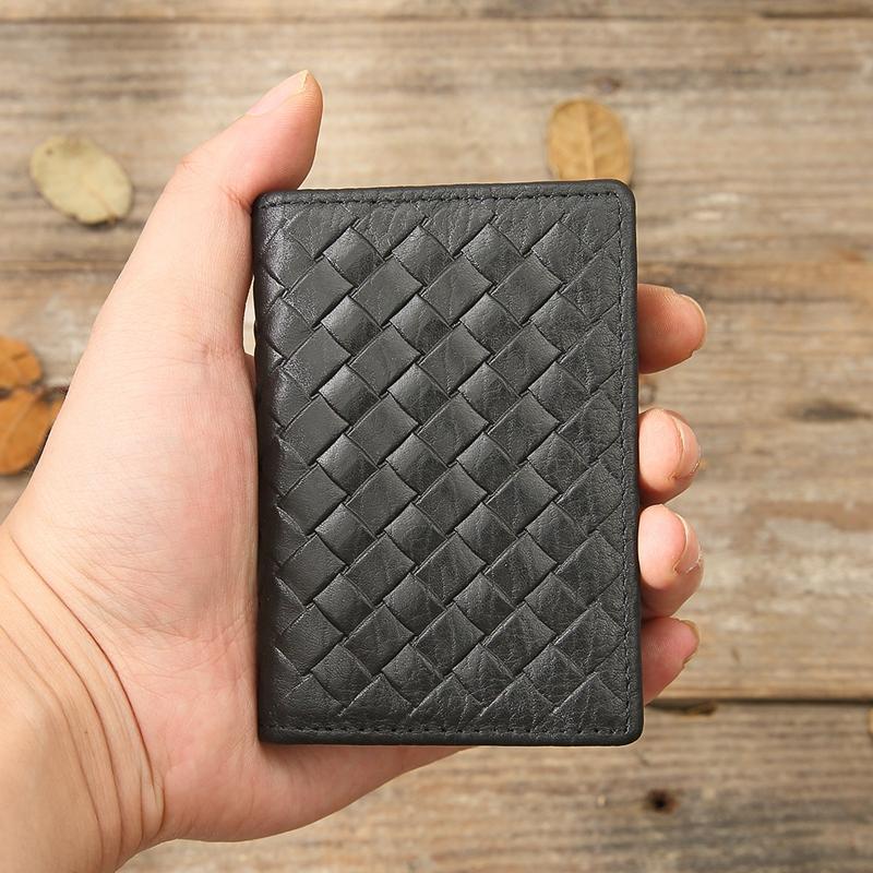 Design: Black Braided Leather Mens Small Wallets Bifold Slim Front Pocket Wallet Multicard for Men