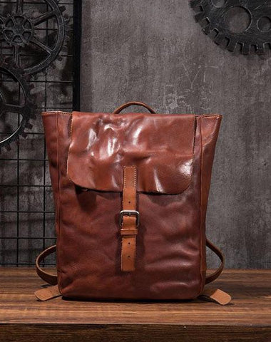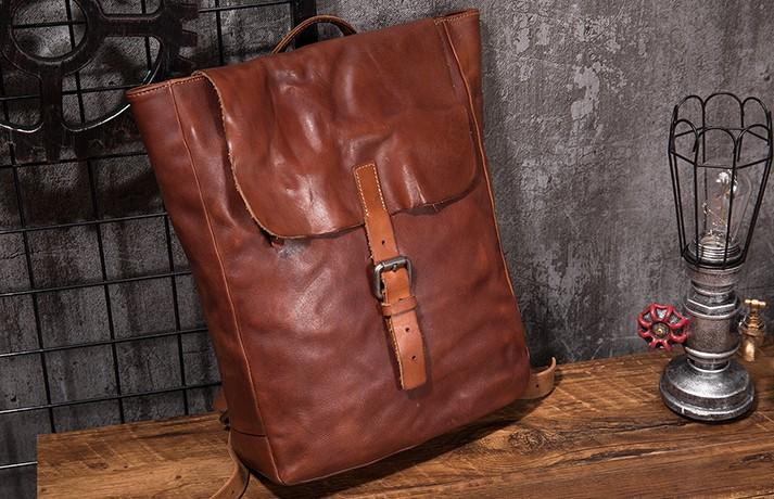 Style: Black Brown Cool Mens Leather Backpack Travel Backpacks Leather Hiking Backpack for Men