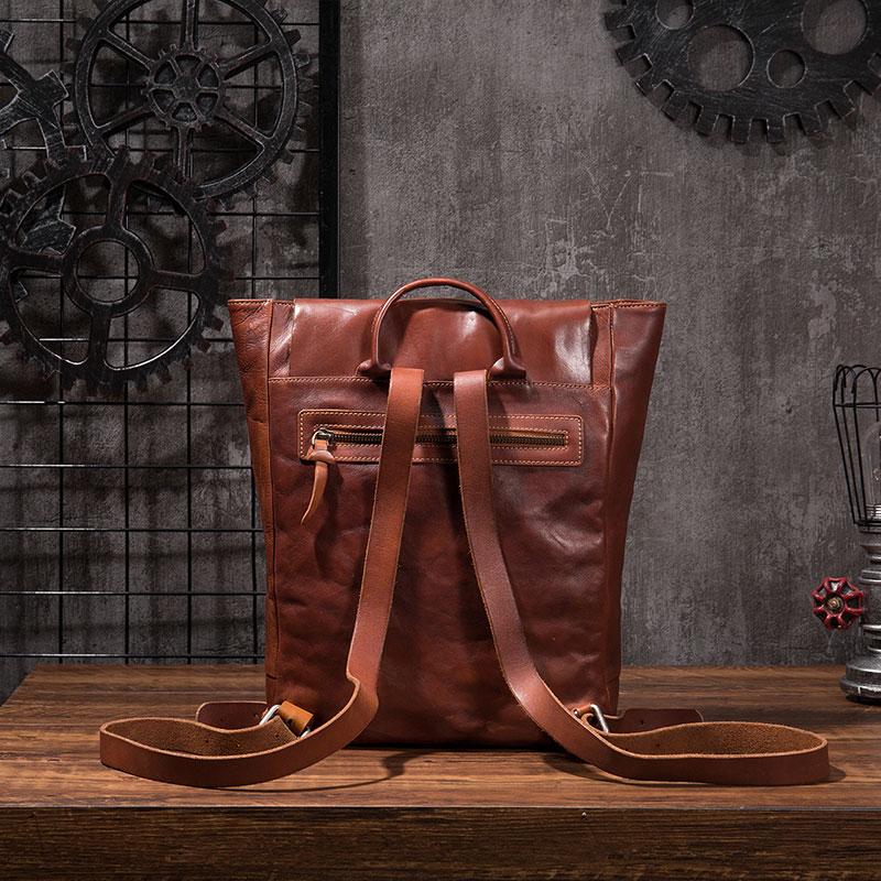 Design: Black Brown Cool Mens Leather Backpack Travel Backpacks Leather Hiking Backpack for Men