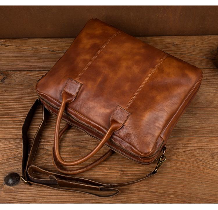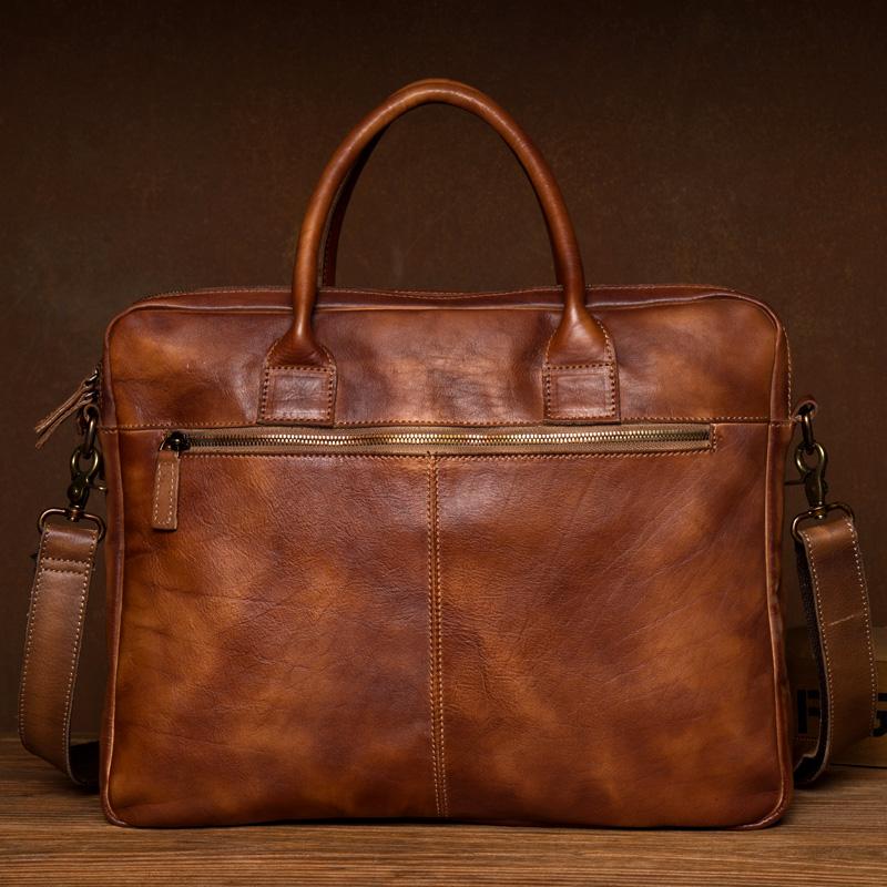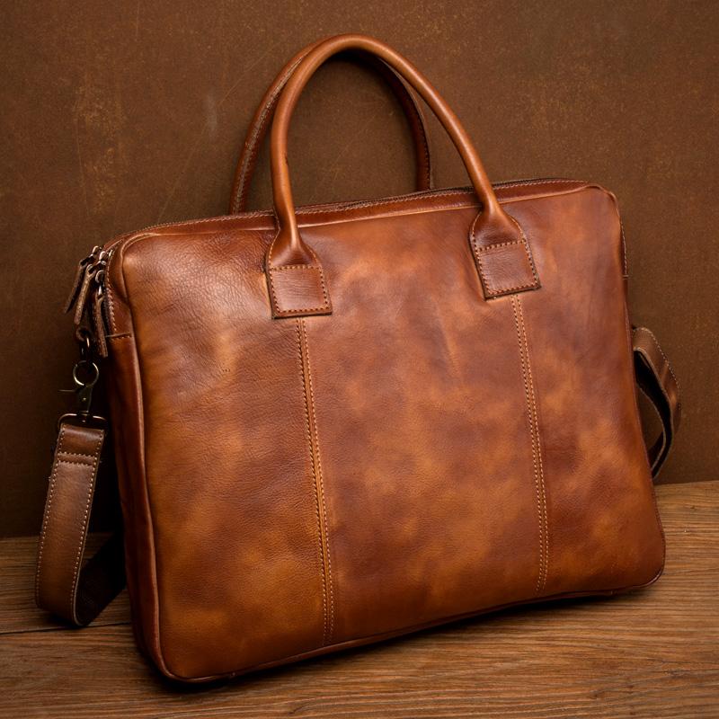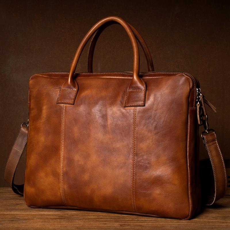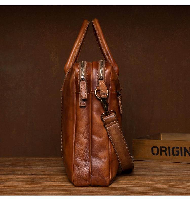 Vintage Brown Leather Mens 15 inches Briefcase Laptop Black HandBag Business Side Bag Work Bag for Men