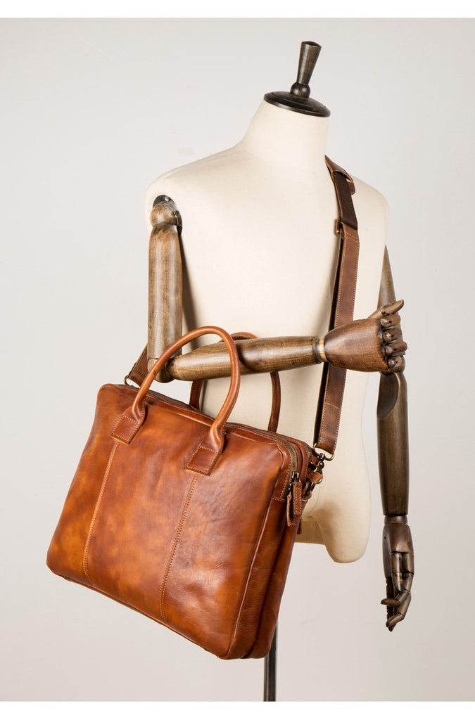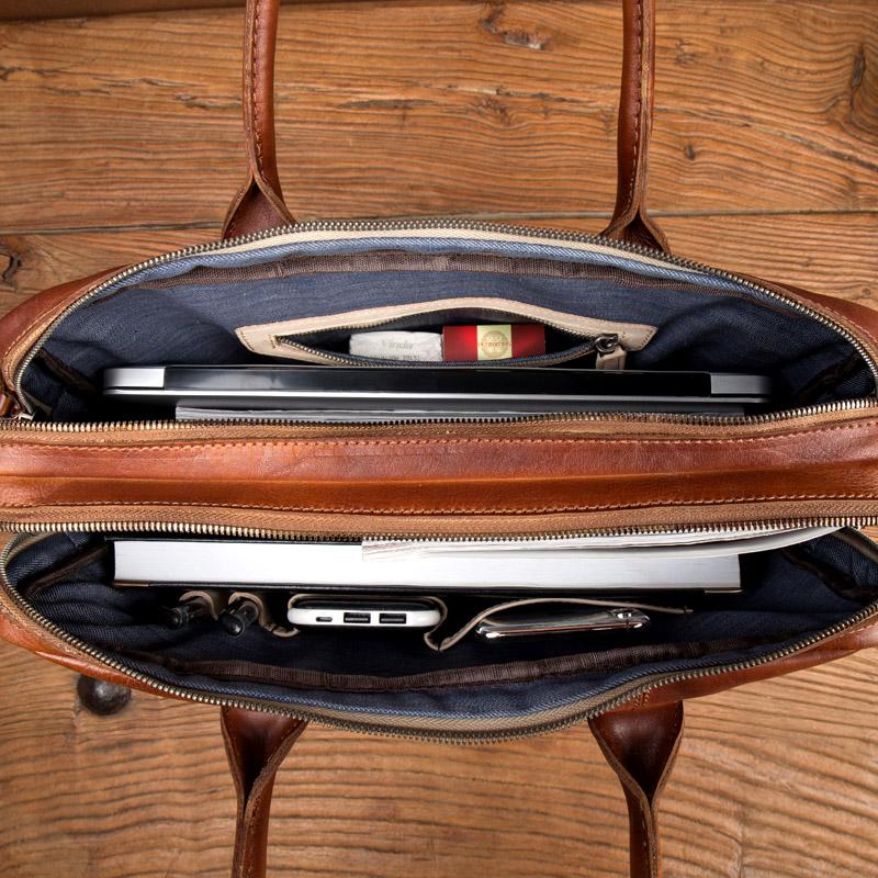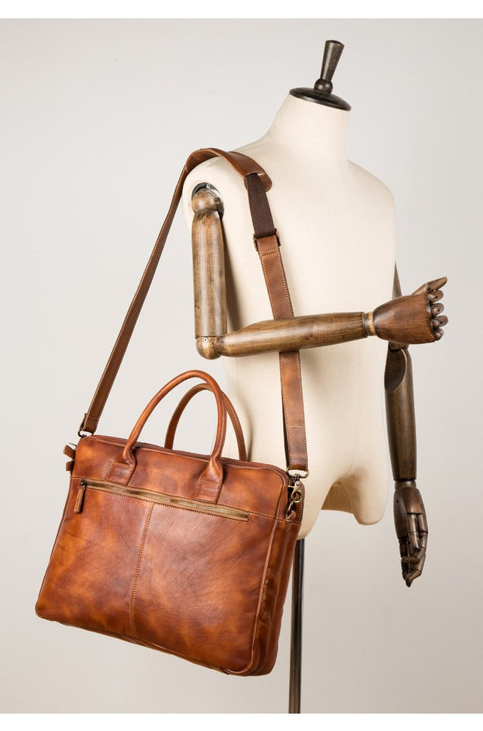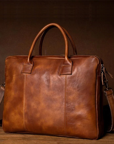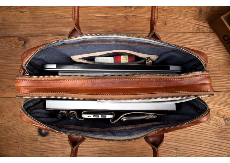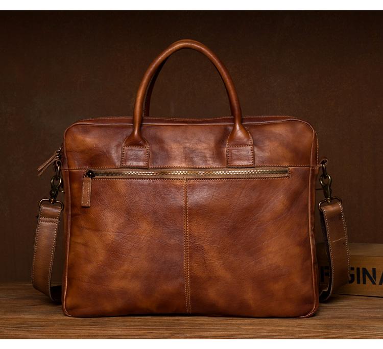 Vintage Brown Leather Mens 15 inches Briefcase Laptop Black HandBag Business Side Bag Work Bag for Men