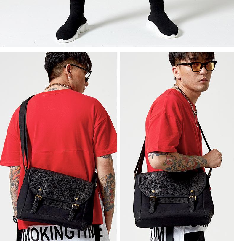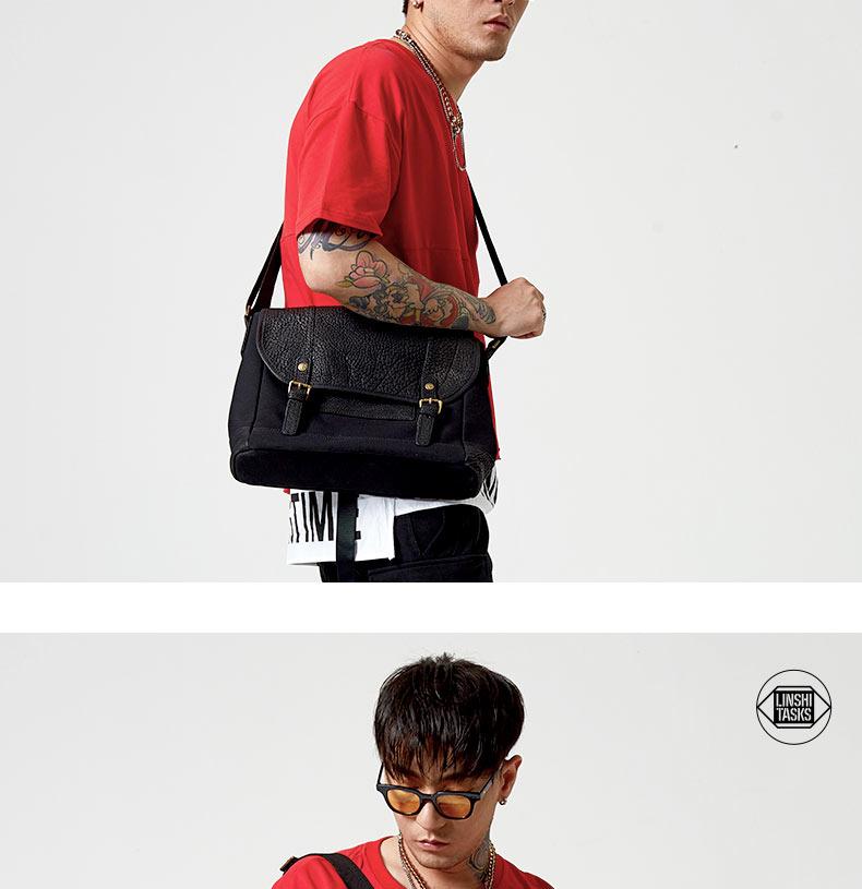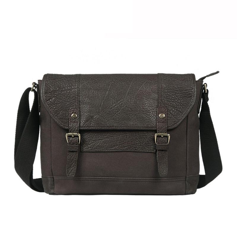 Design: Black Canvas Leather Mens Side Bag Messenger Bags Dark Brown Canvas Courier Bag for Men
