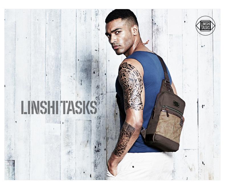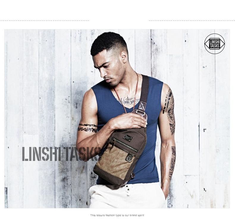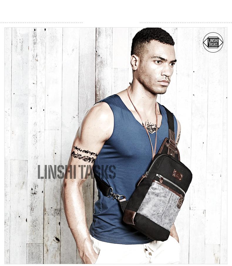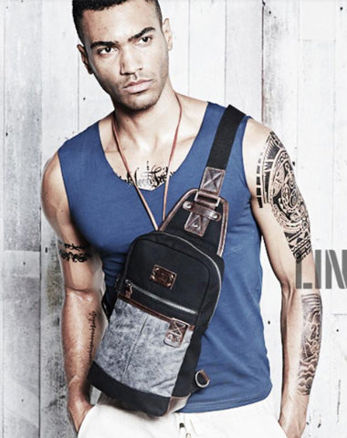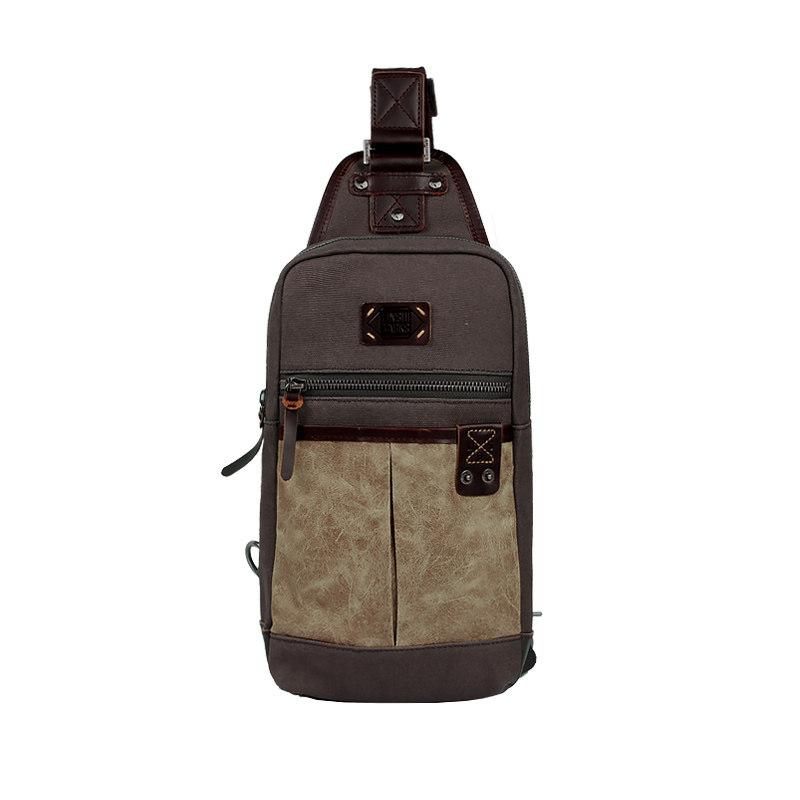 Design: Black Canvas Leather Sling Backpack Men's Sling Bag Chest Bag Dark Brown Canvas One shoulder Backpack For Men
