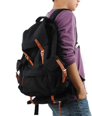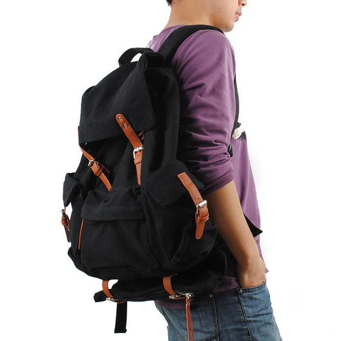 Style: Black CANVAS Mens Casual Waterproof Computer Bag Travel Bag College Backpack Hiking Bag For Men