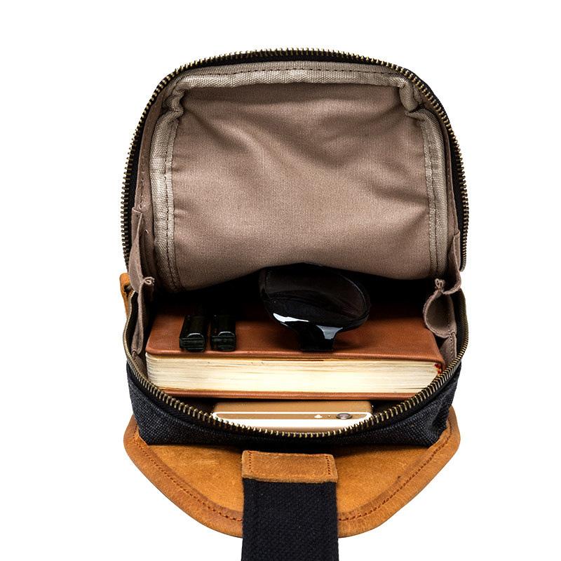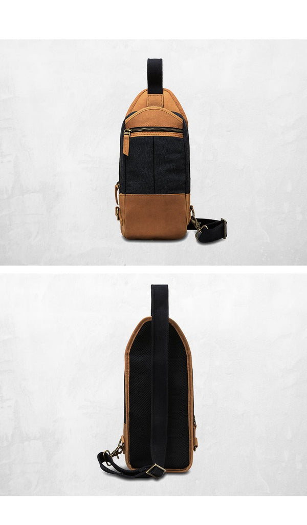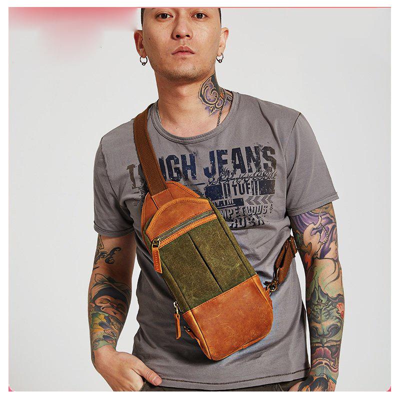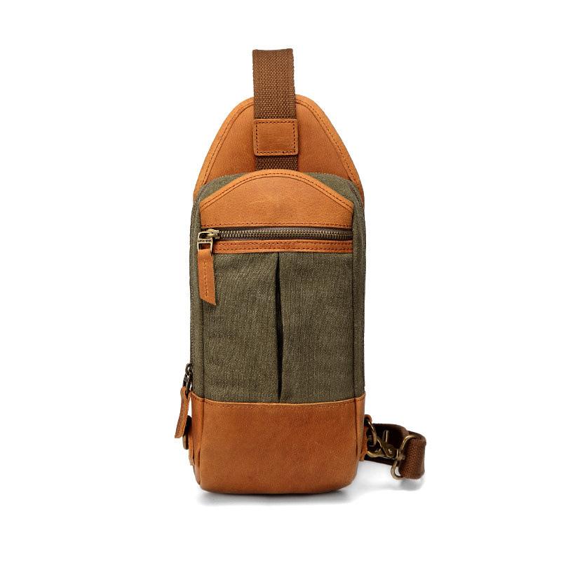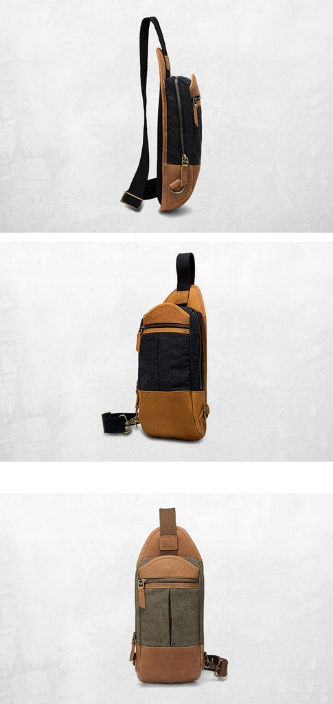Style: Black Canvas Sling Backpack Men's Sling Bag Army Green Chest Bag Canvas One shoulder Backpack For Men