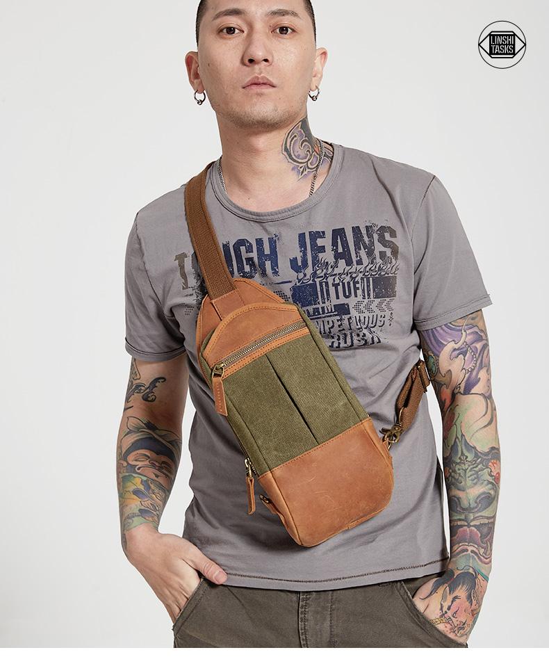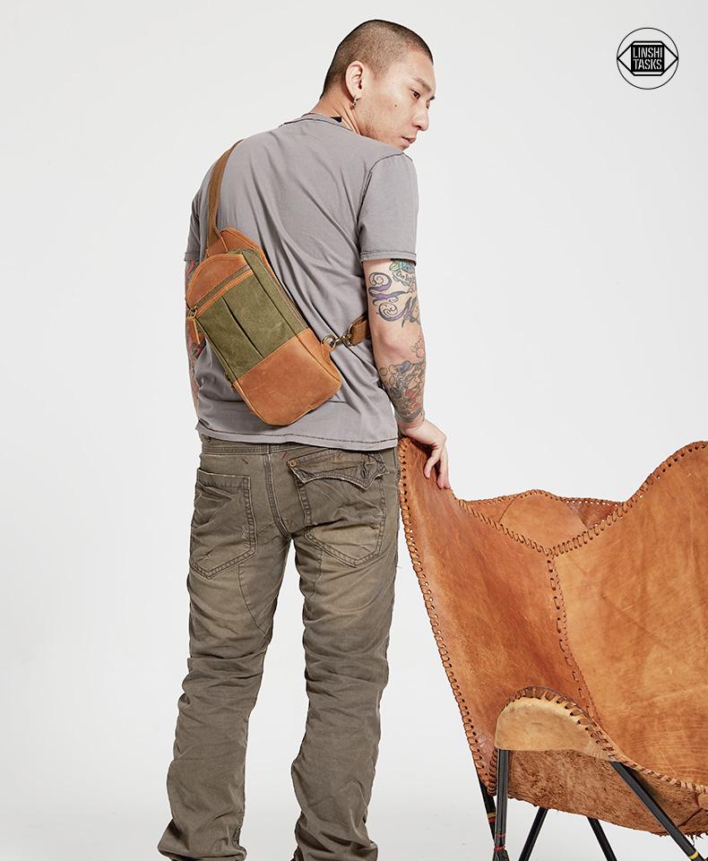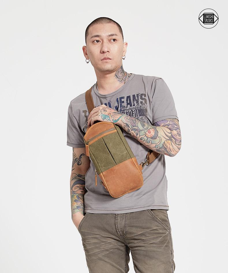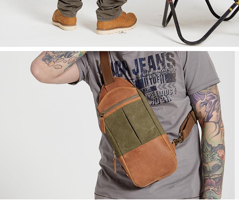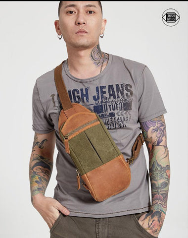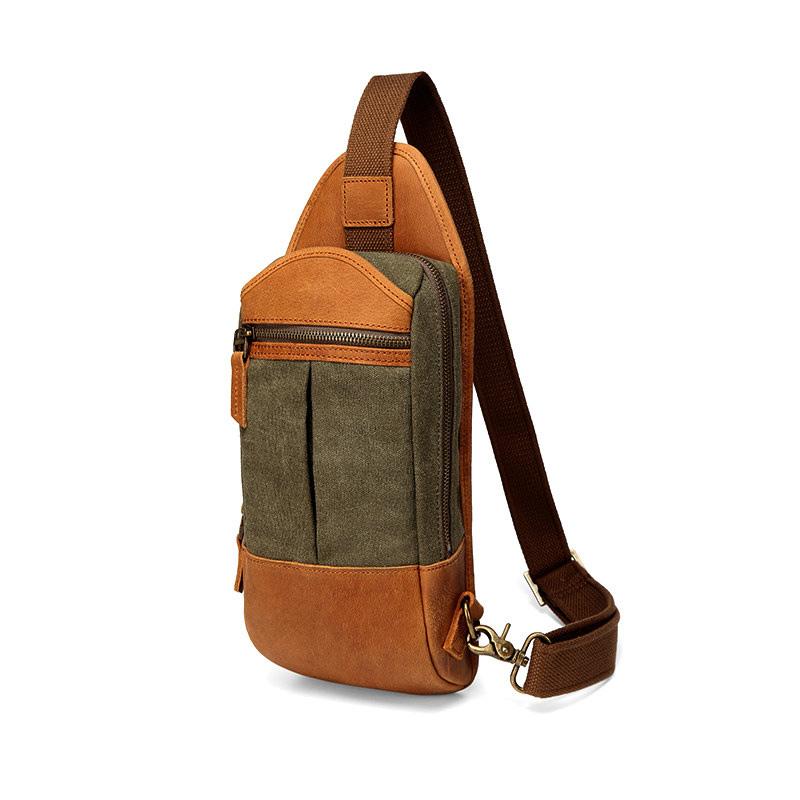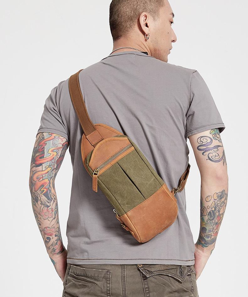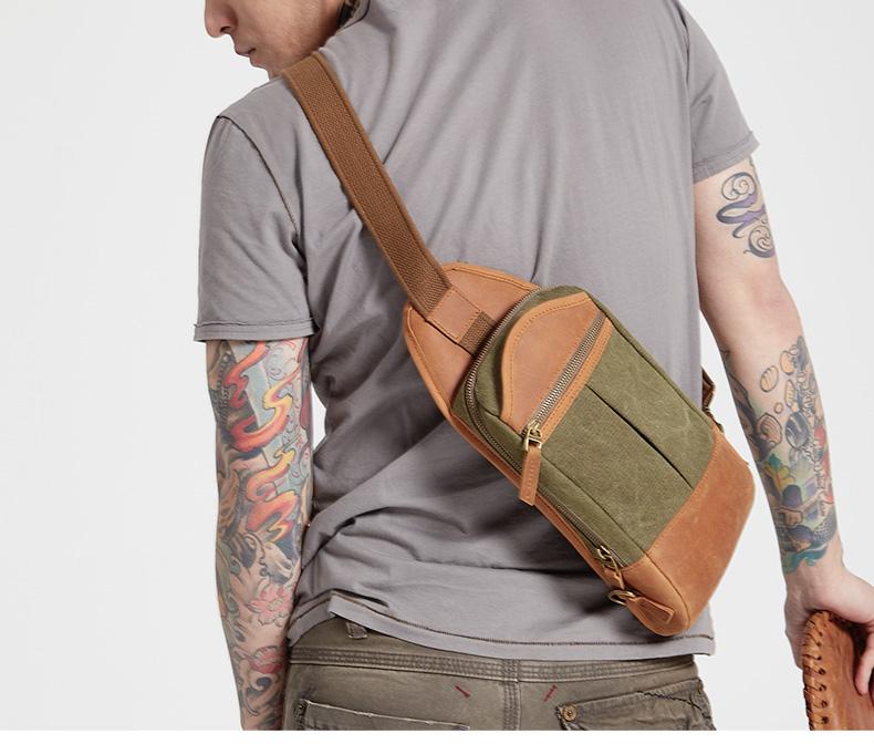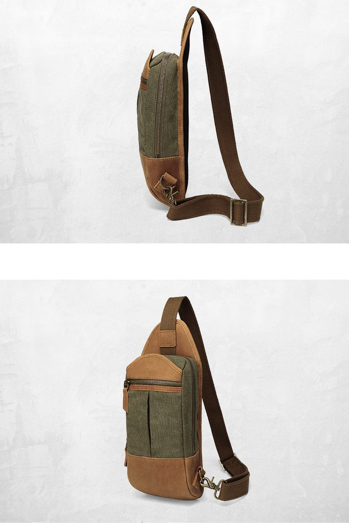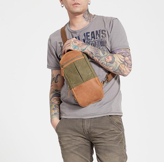 Design: Black Canvas Sling Backpack Men's Sling Bag Army Green Chest Bag Canvas One shoulder Backpack For Men