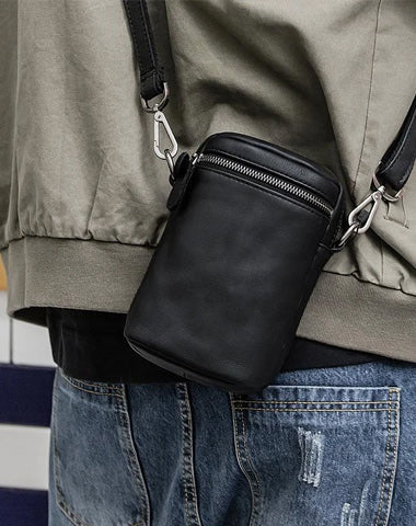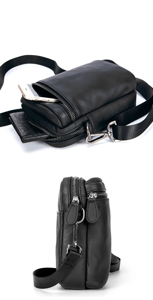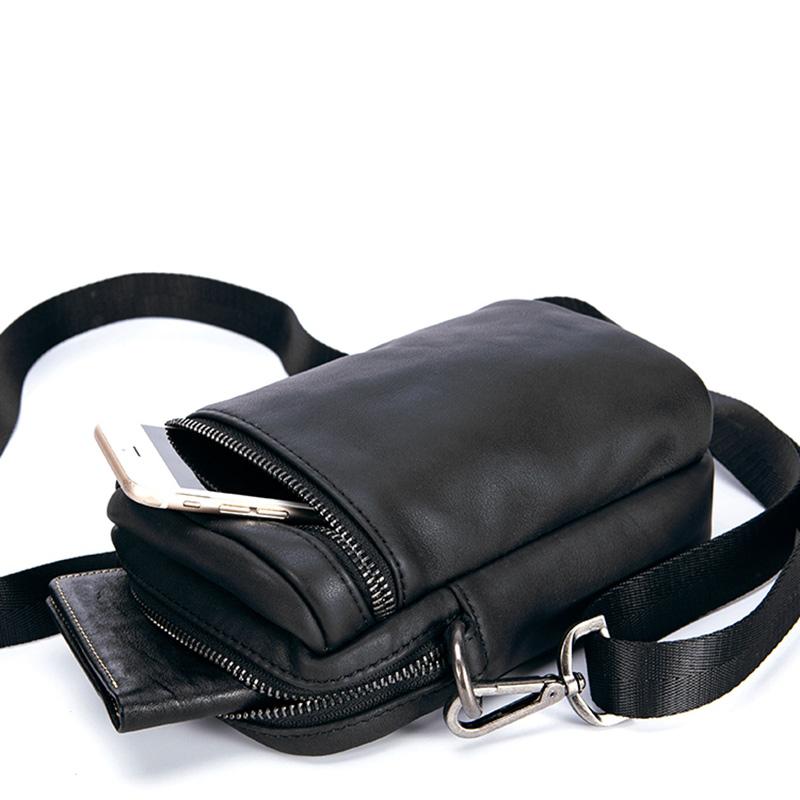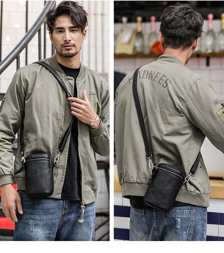 Style: Black Casual Leather Mens 8 inches Brown Messenger Bag Phone Bag Sling Bag For Men