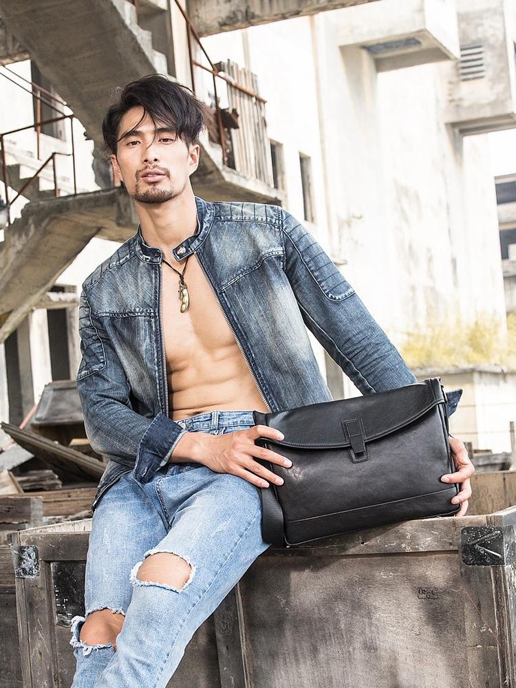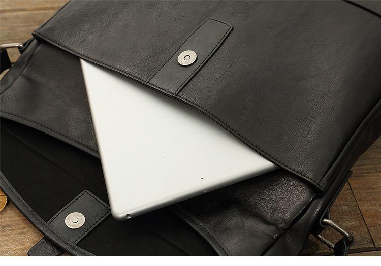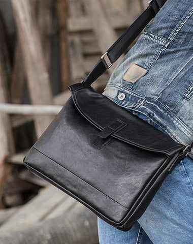 Style: Black Casual Leather Mens 10 inches Side Bag Postman Bag Black Messenger Bags Courier Bag for Men