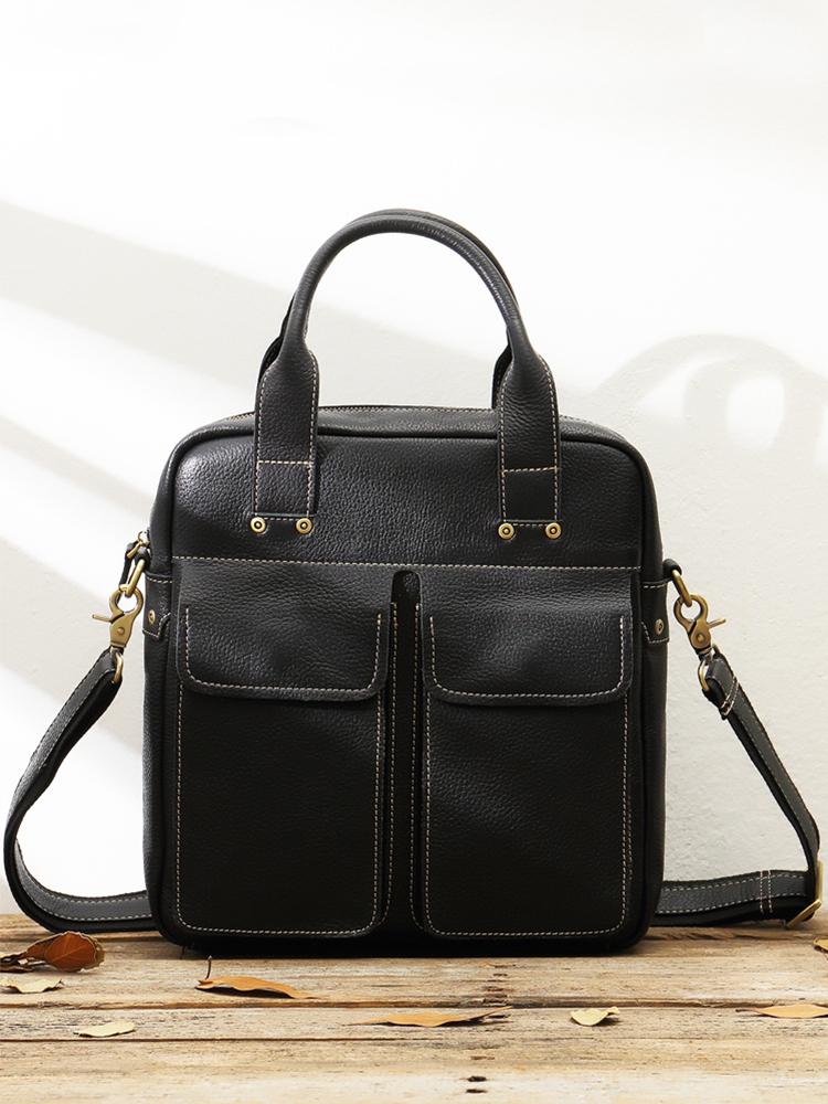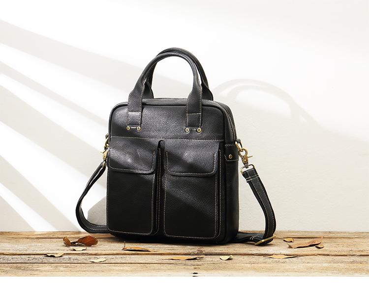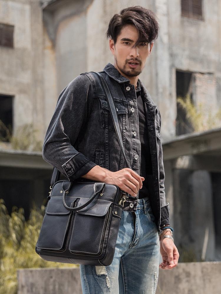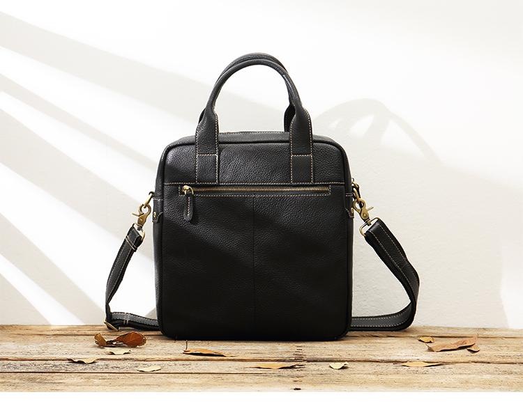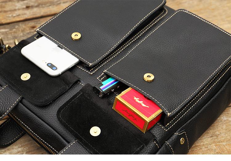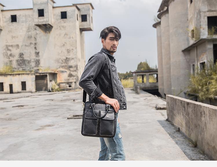 Design: Black Casual Leather Mens 10 inches Side Bags Postman Bag Black Messenger Bag Courier Bag for Men