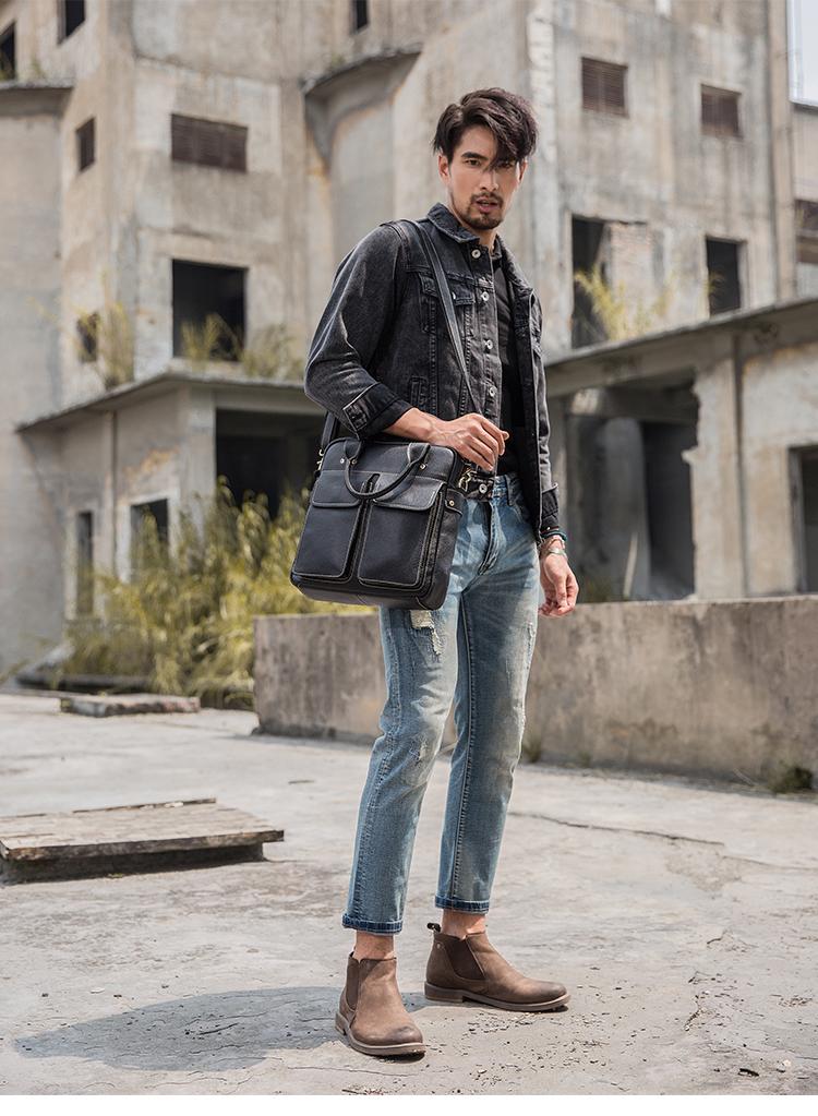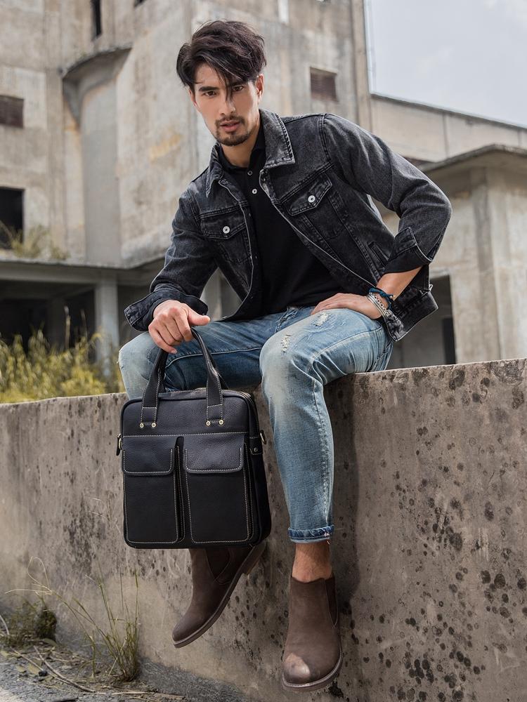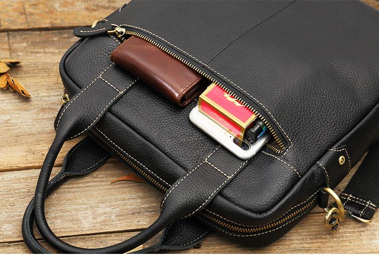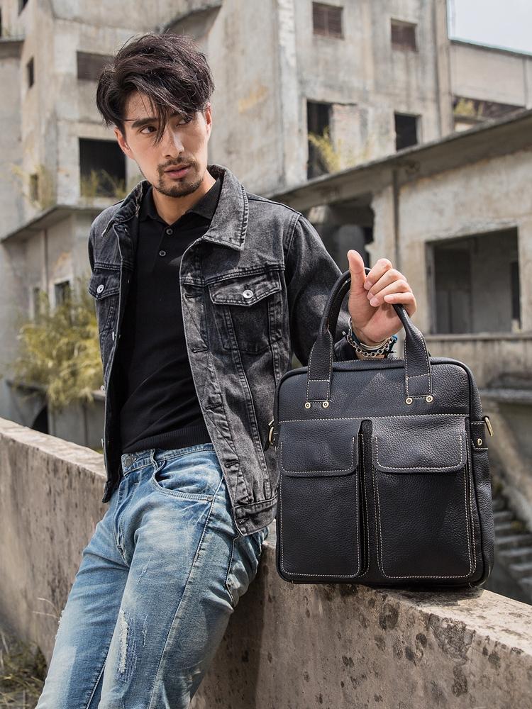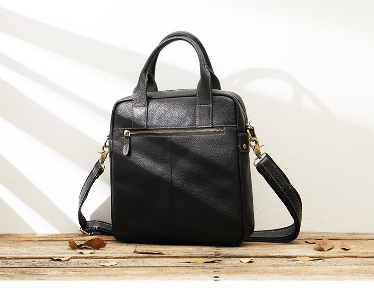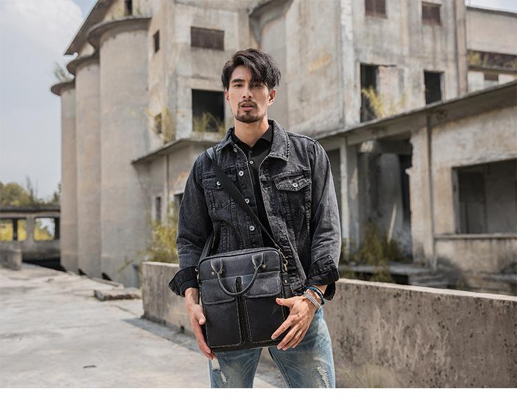 Design: Black Casual Leather Mens 10 inches Side Bags Postman Bag Black Messenger Bag Courier Bag for Men