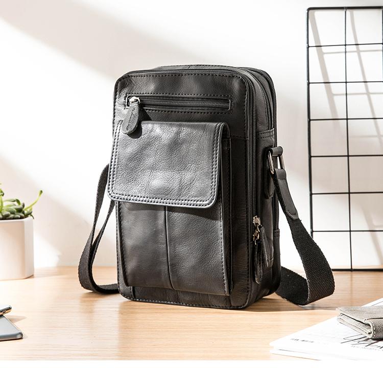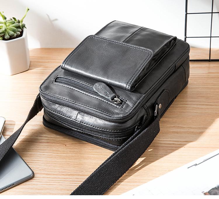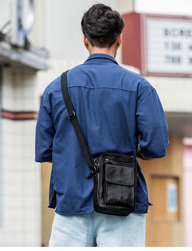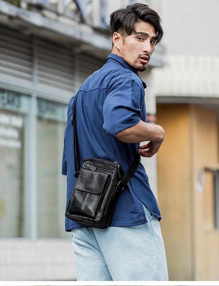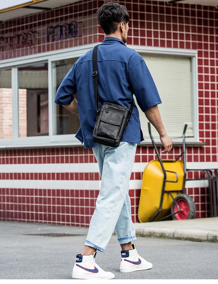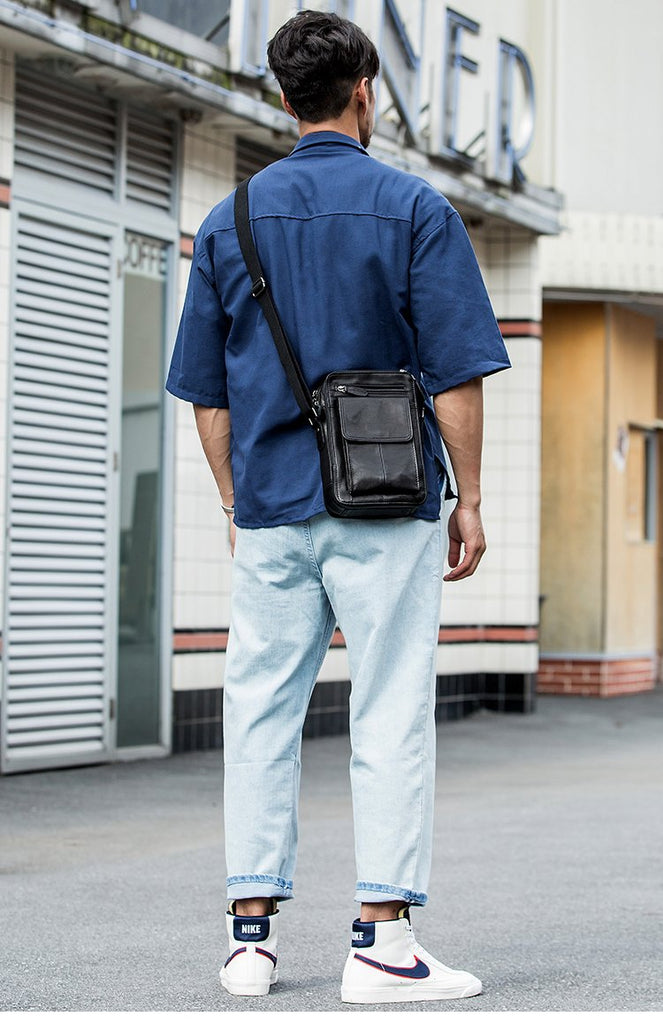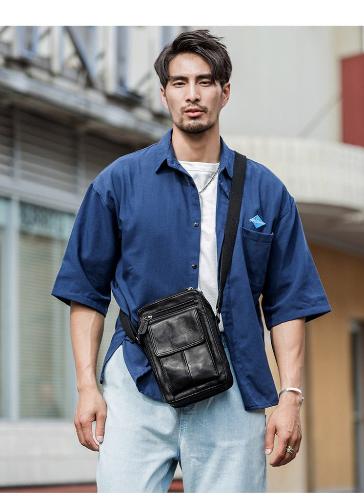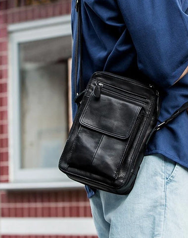 Design: Black Casual Leather Mens 10 inches Vertical Shoulder Bag Black Messenger Bags Side Bag Sling Bag for Men