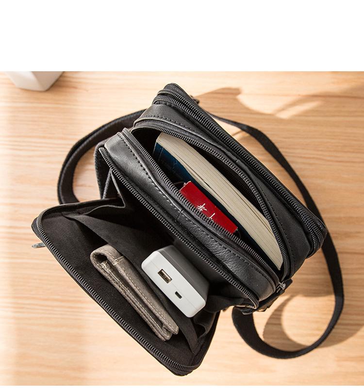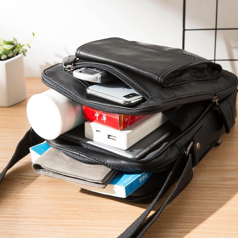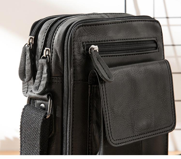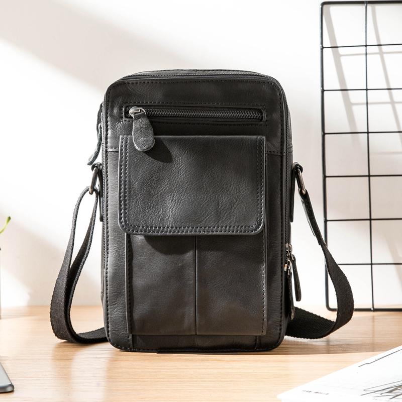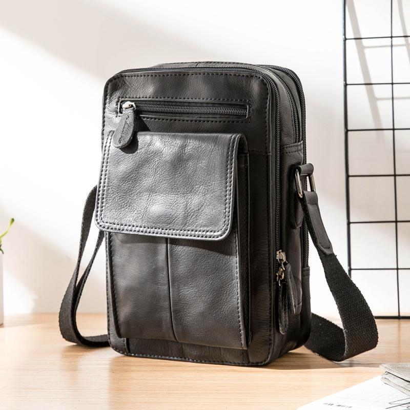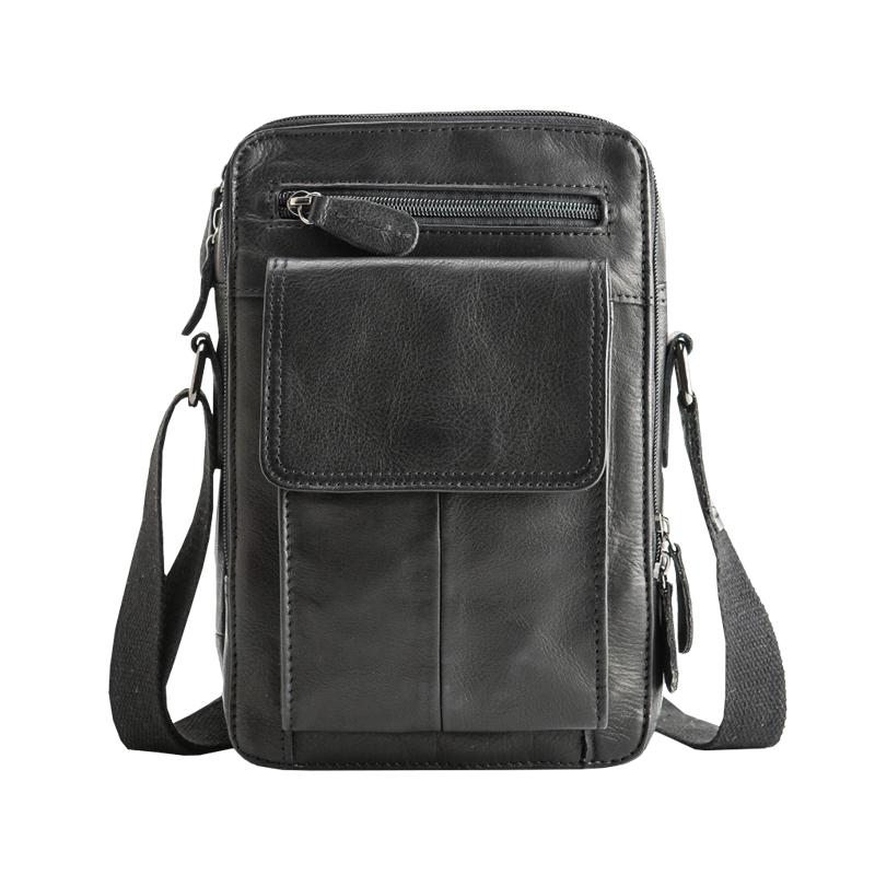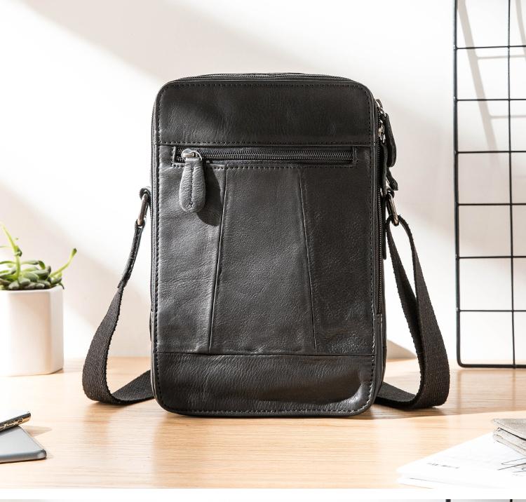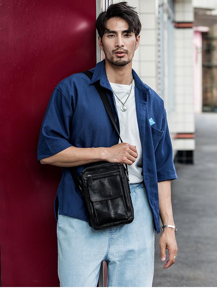Design: Black Casual Leather Mens 10 inches Vertical Shoulder Bag Black Messenger Bags Side Bag Sling Bag for Men