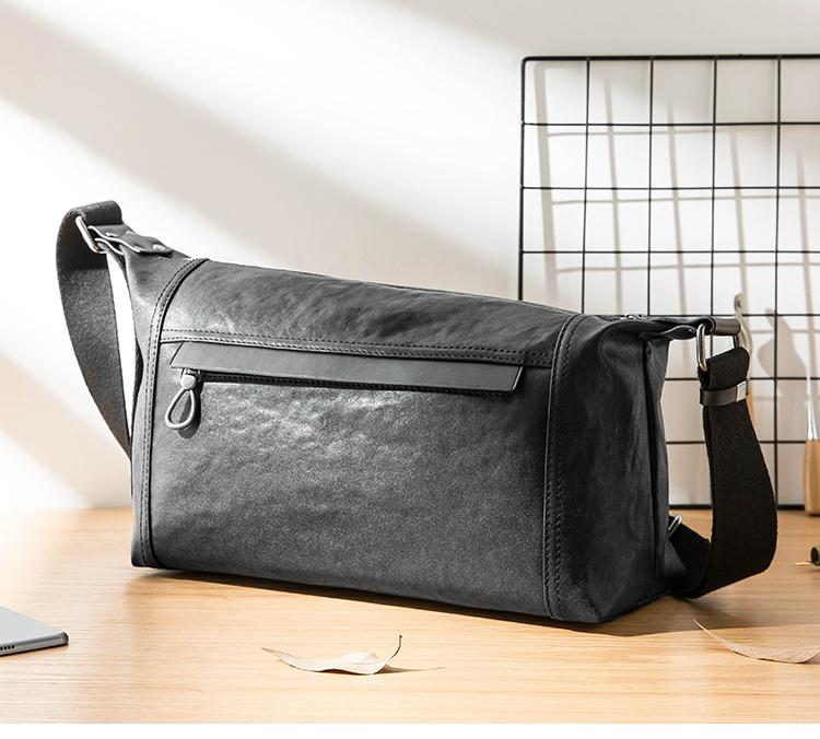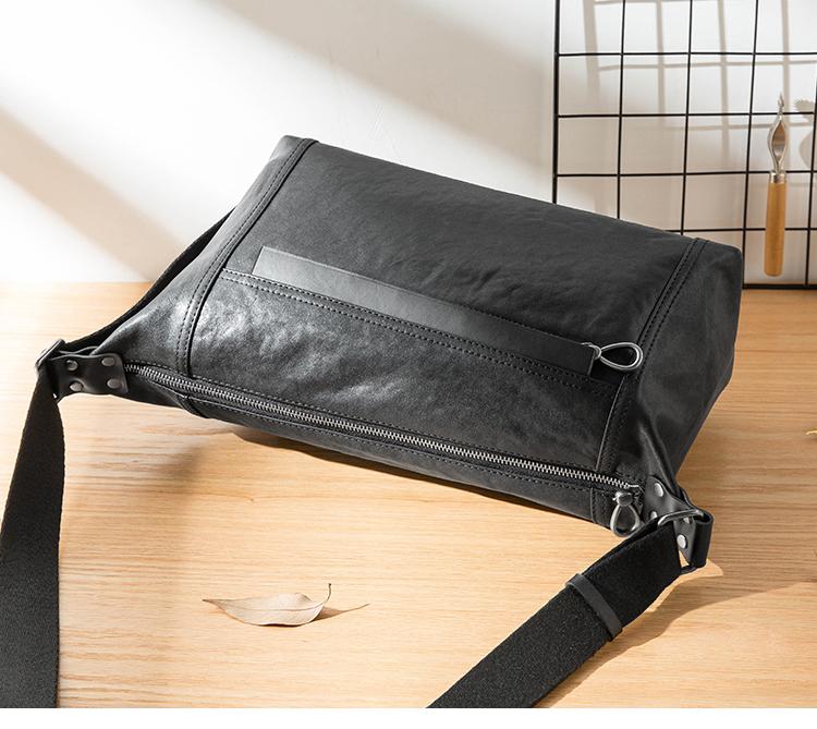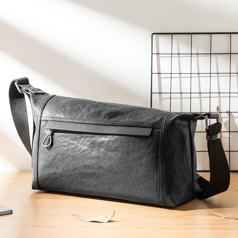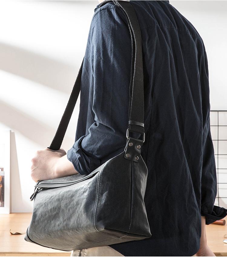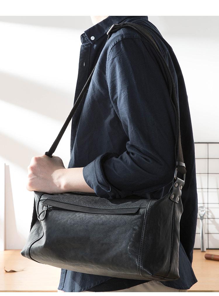 Design: Black Casual Leather Mens 11 inches Large Shoulder Bag Black Messenger Bags Side Bag for Men