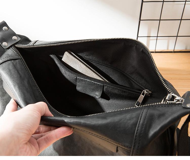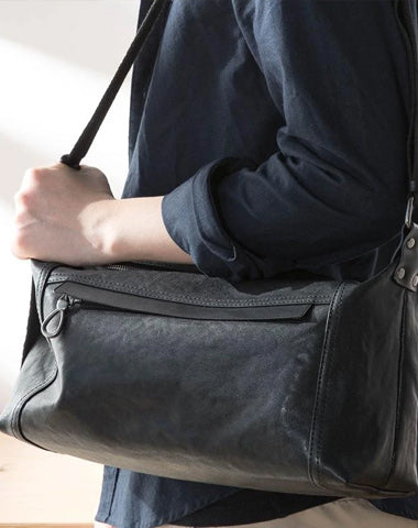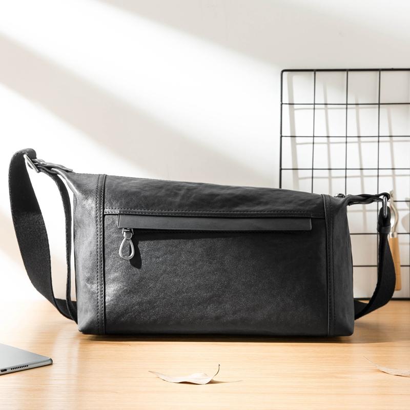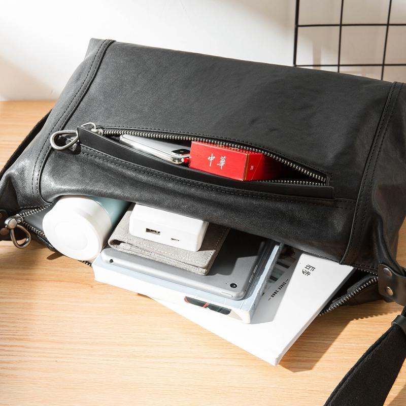 Style: Black Casual Leather Mens 11 inches Large Shoulder Bag Black Messenger Bags Side Bag for Men