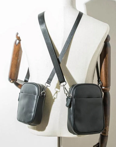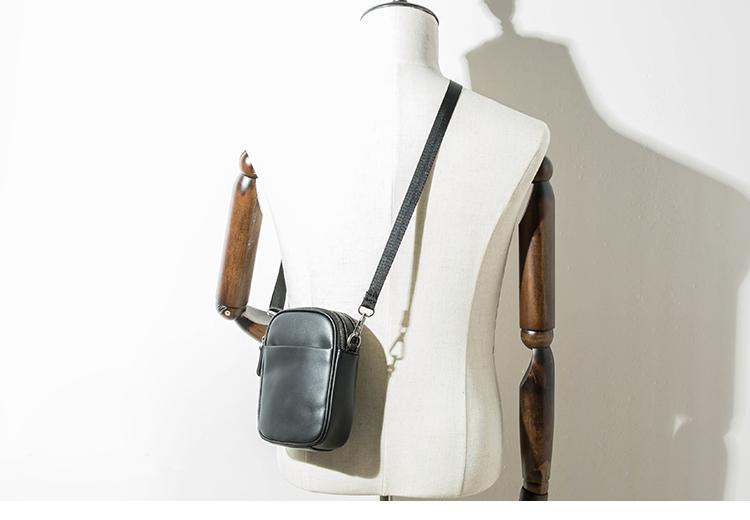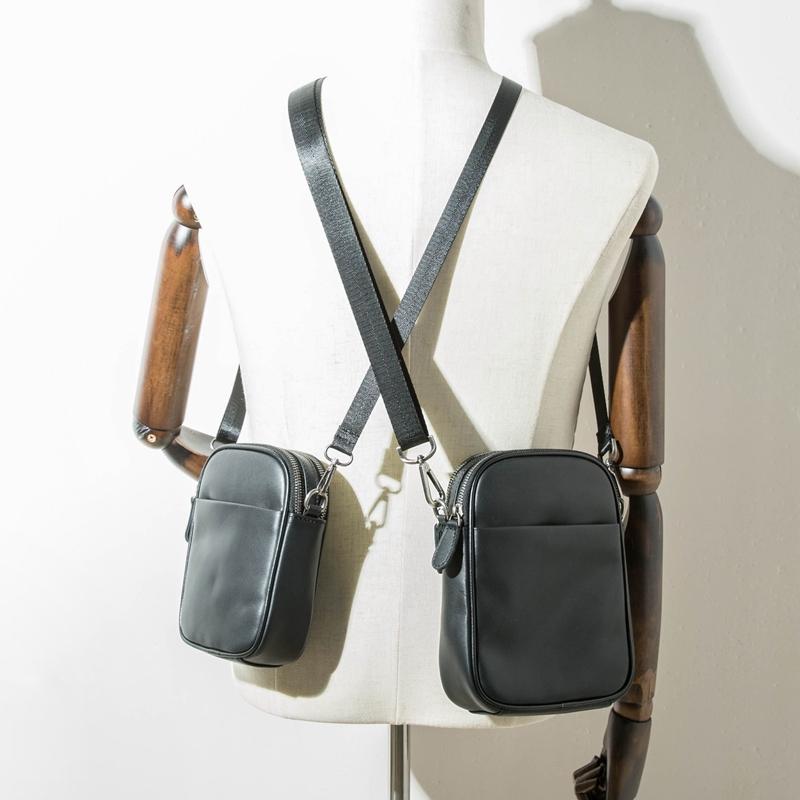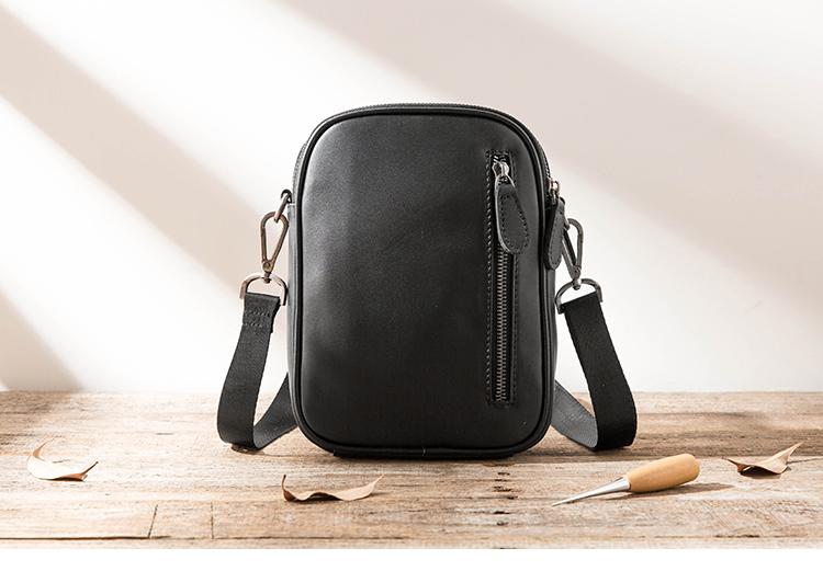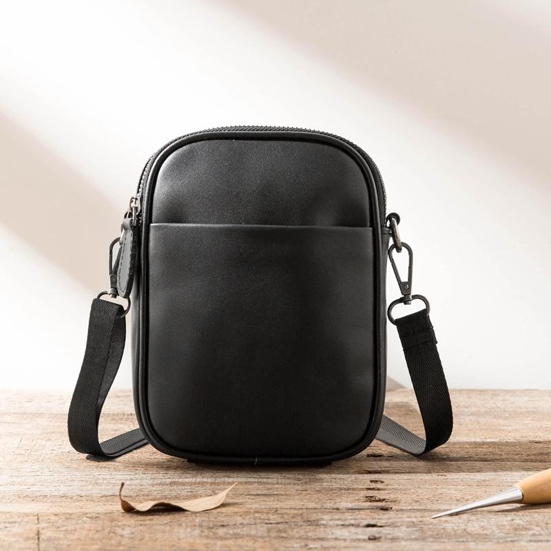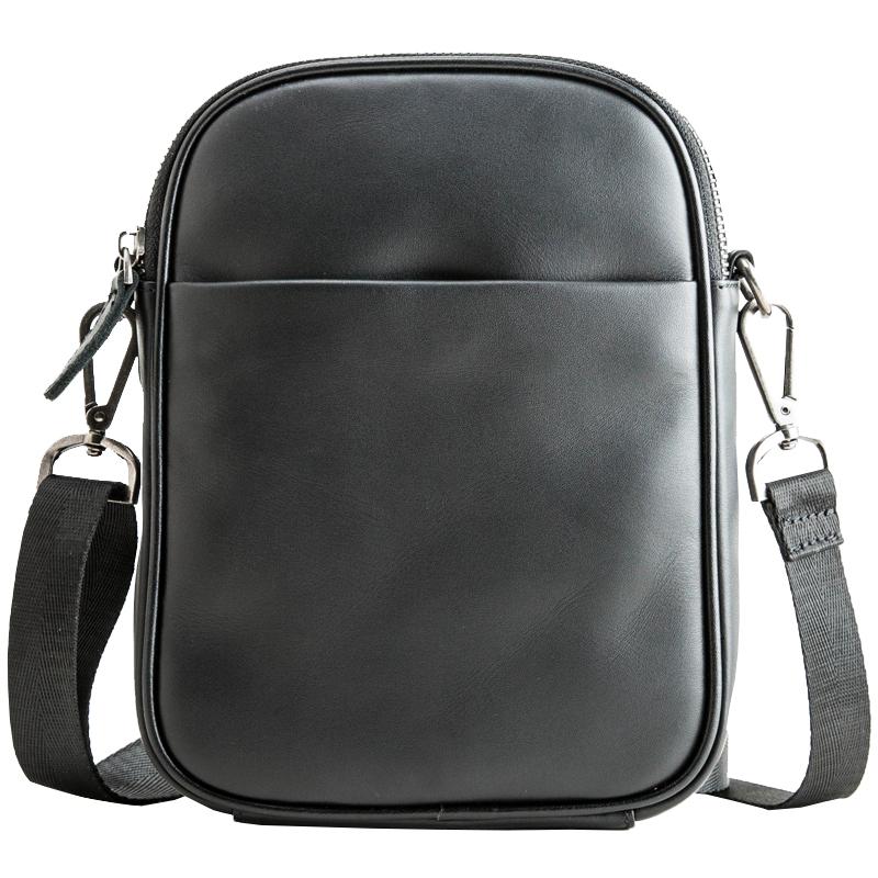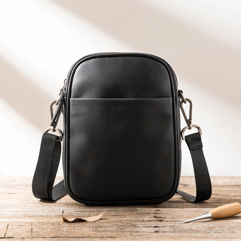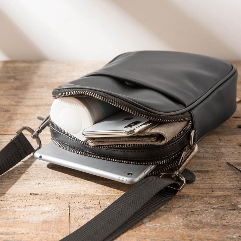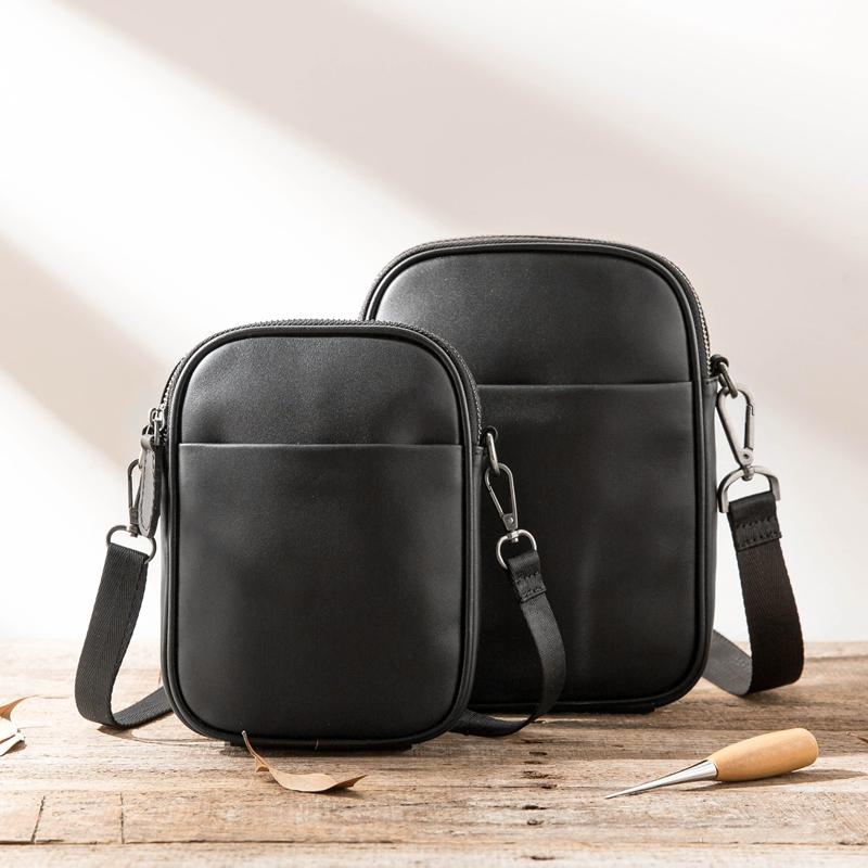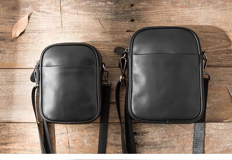 Design: Black Casual Leather Mens 8 inches Vertical Side Bag Black Messenger Bags Shoulder Bag Courier Bag for Men
