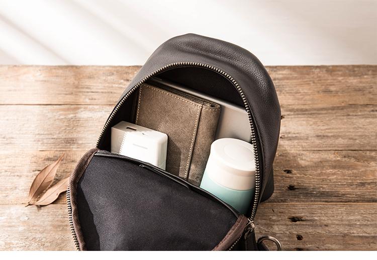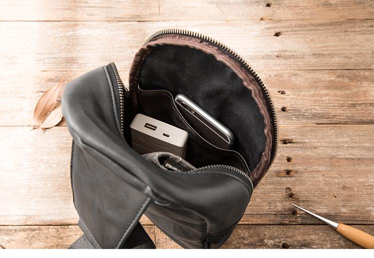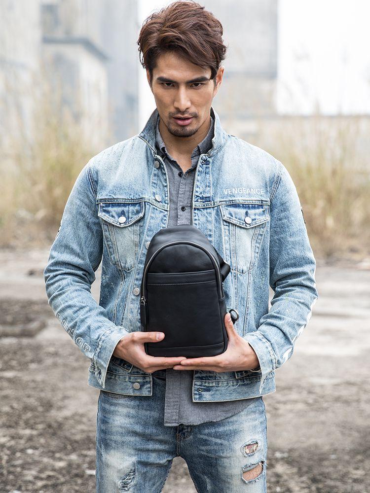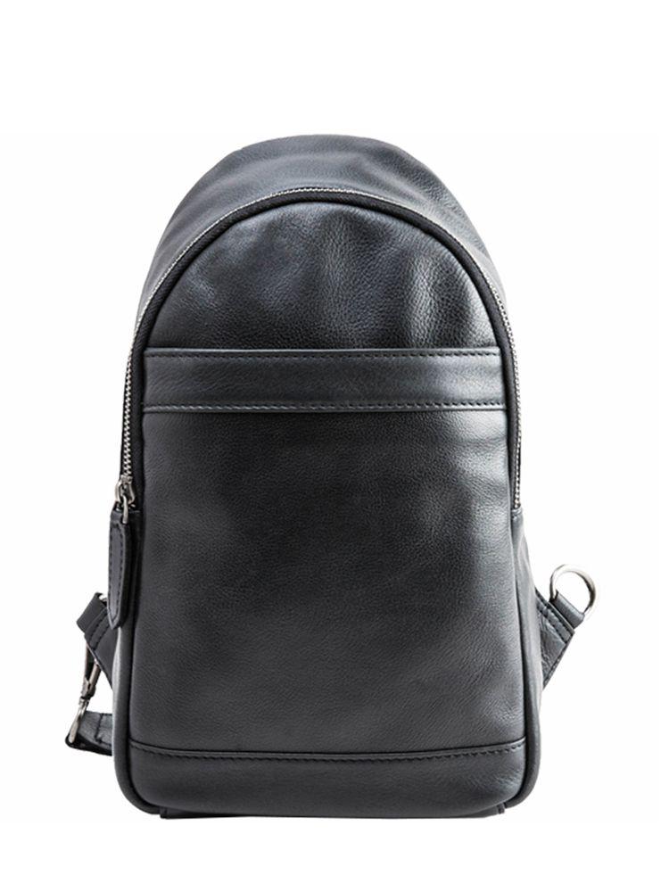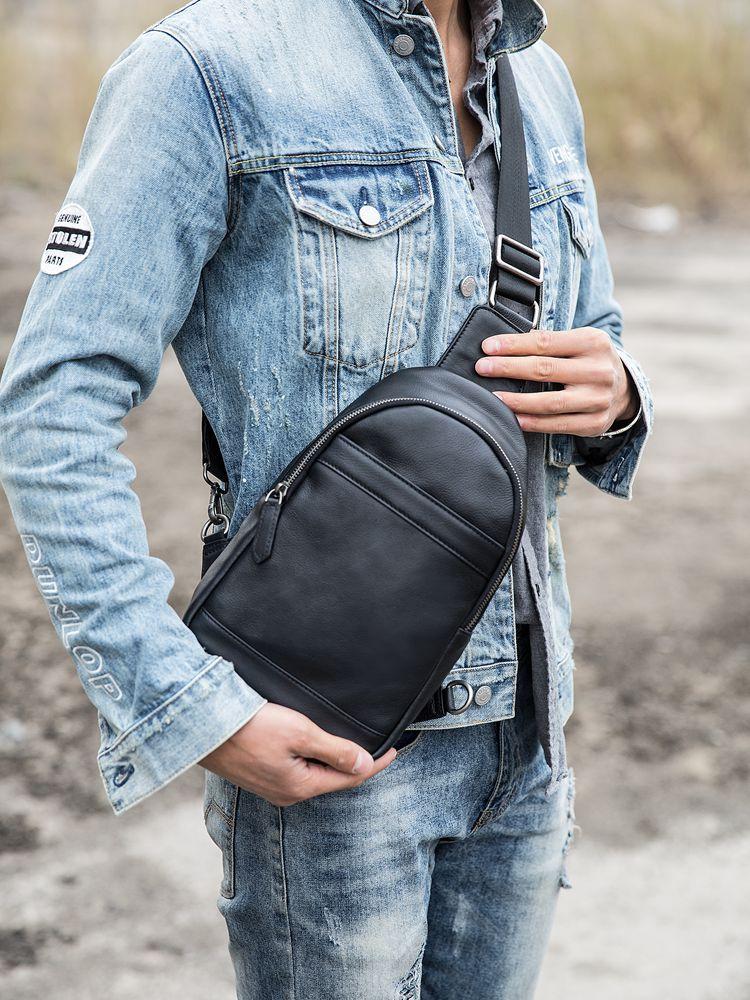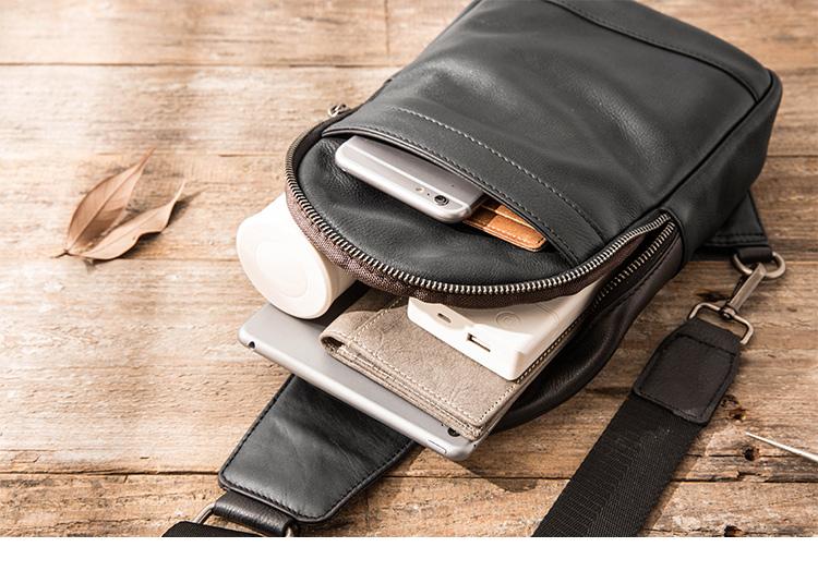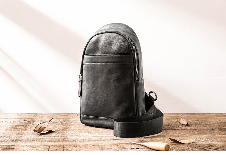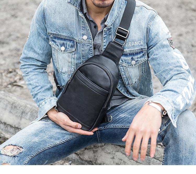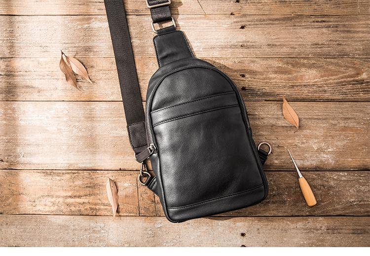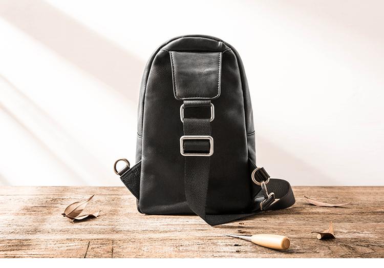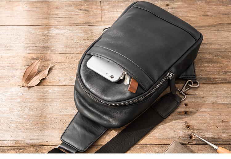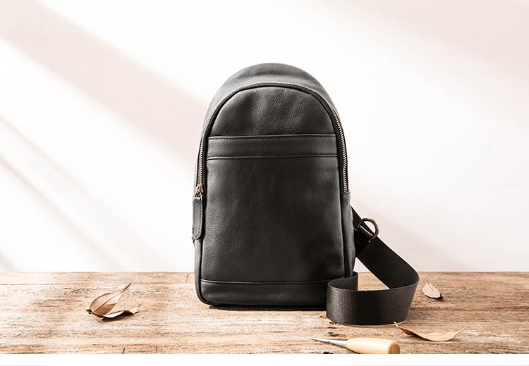 Design: Black Casual Leather Mens 8inches Sling Bag Chest Bags Black One Shoulder Backpack for Men