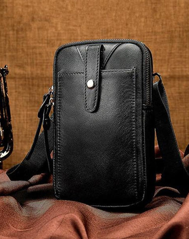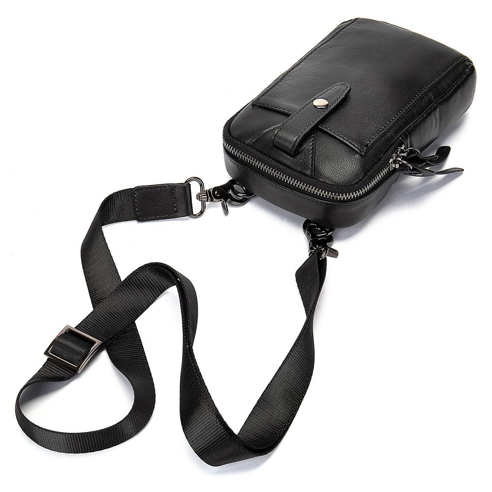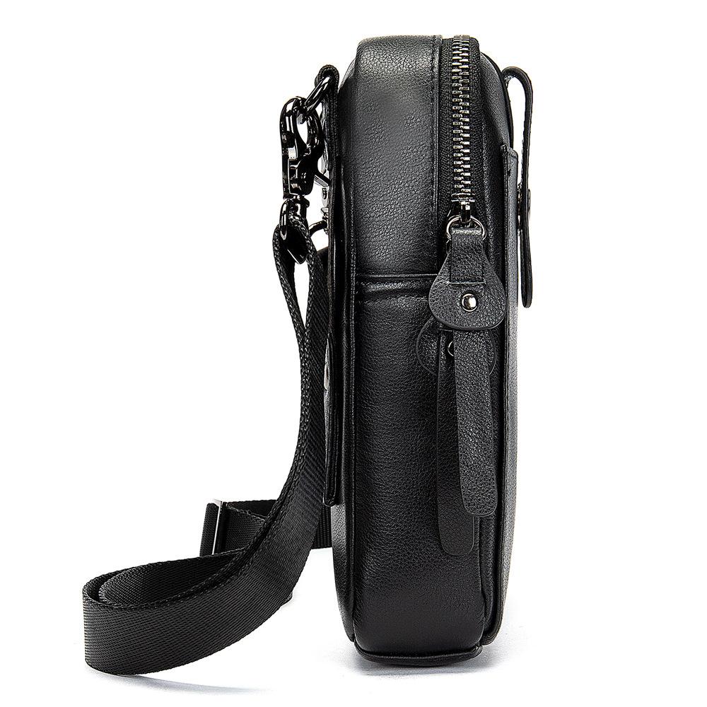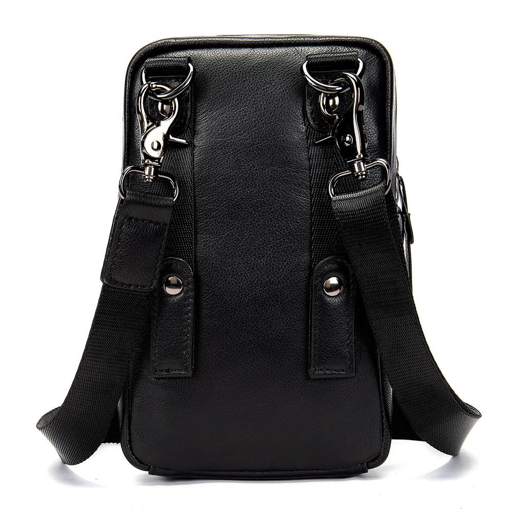 Design: Cool Black Leather Men's Cell Phone Holster Mini Side Bag Belt Pouch For Men
