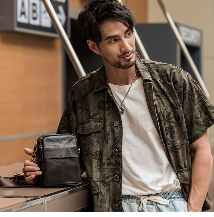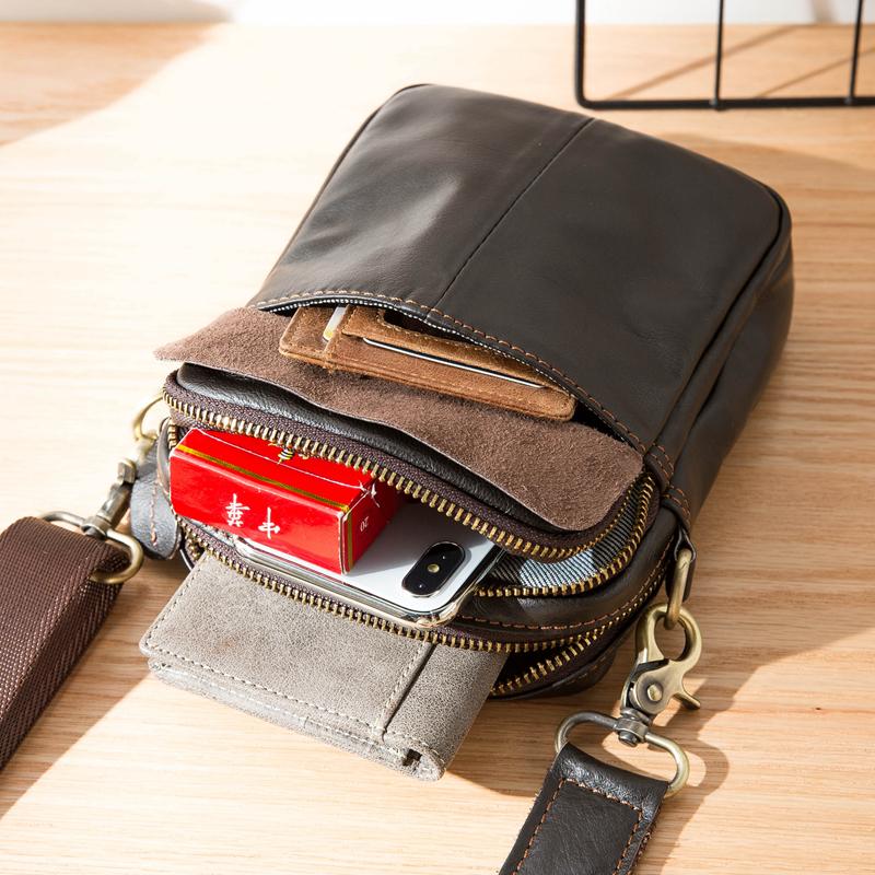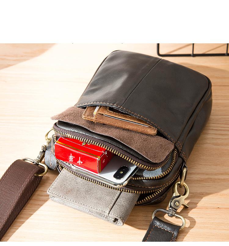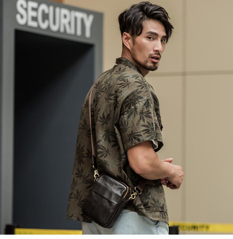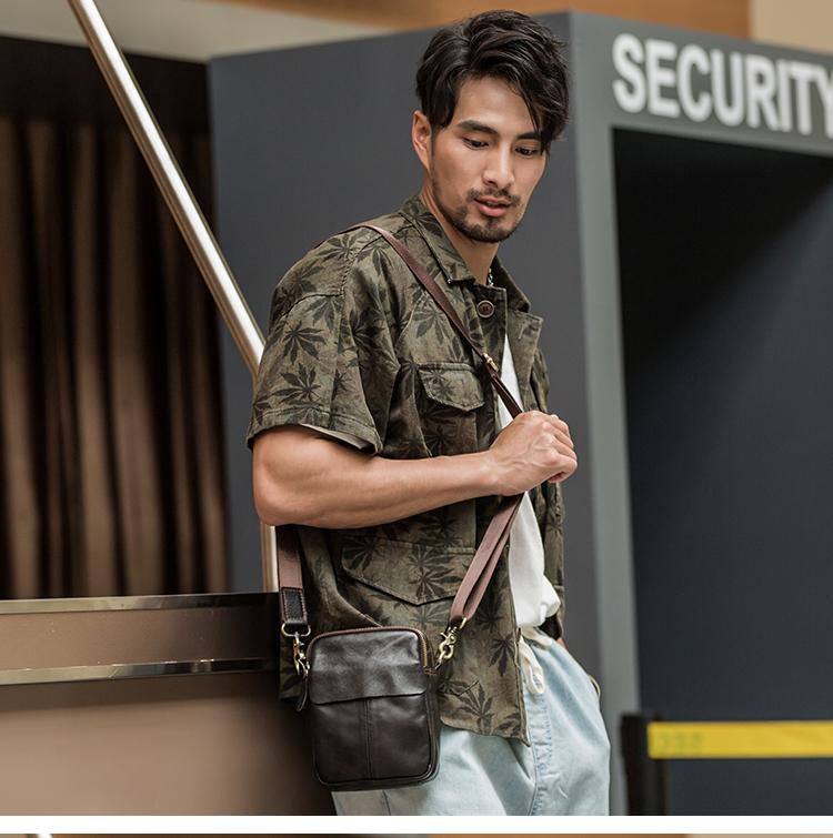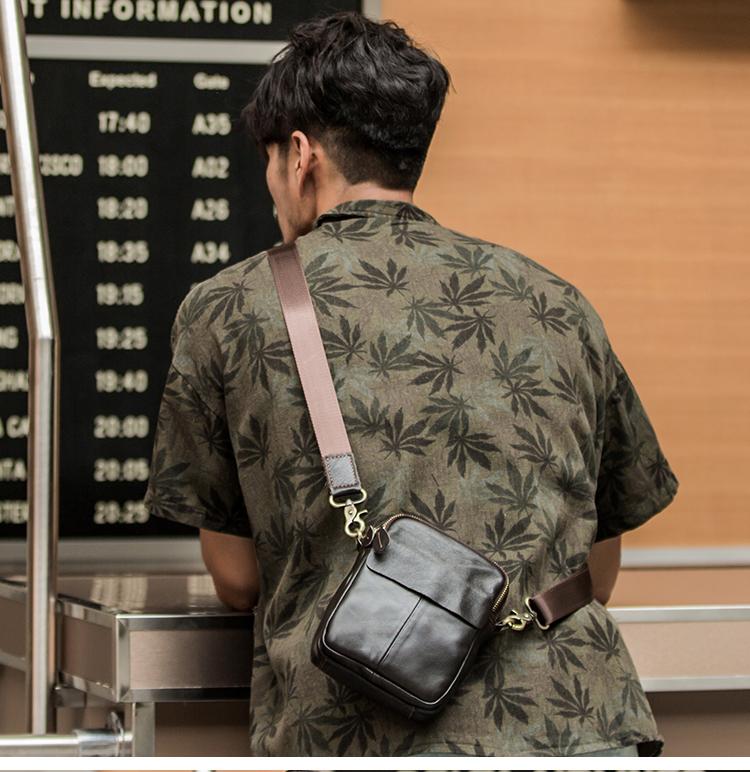 Design: Black Casual Leather Mens Vertical Side Bag Small Messenger Bags Chest Bag for Men