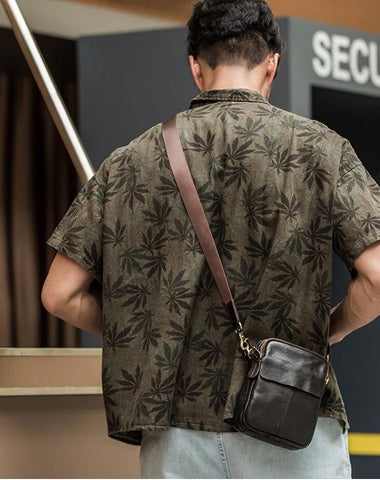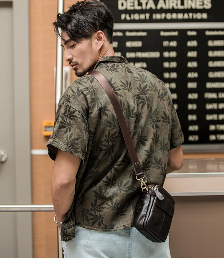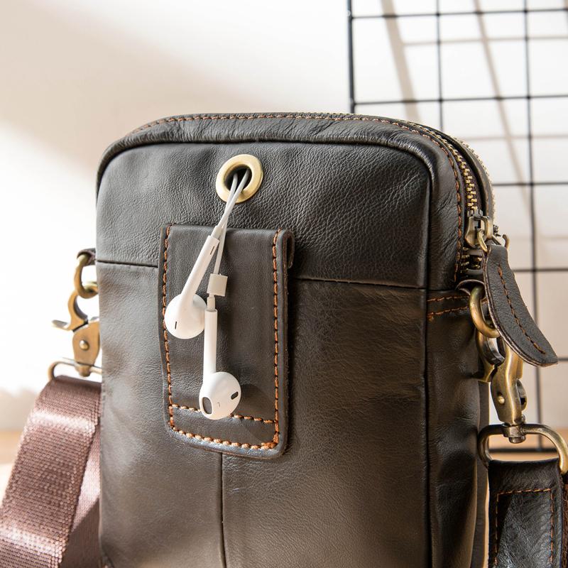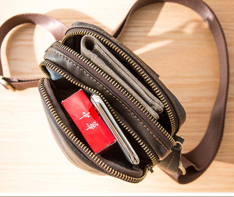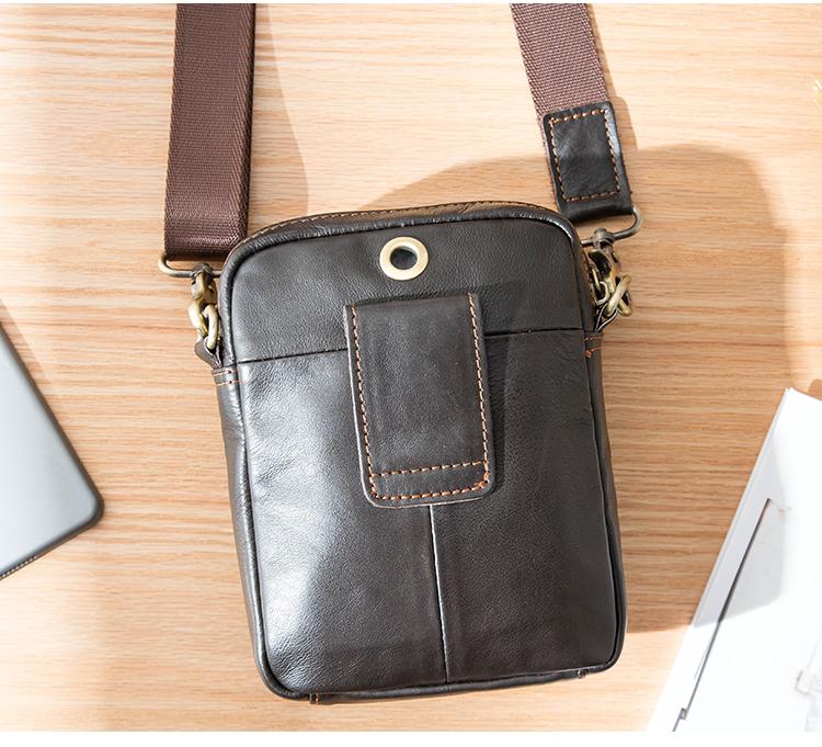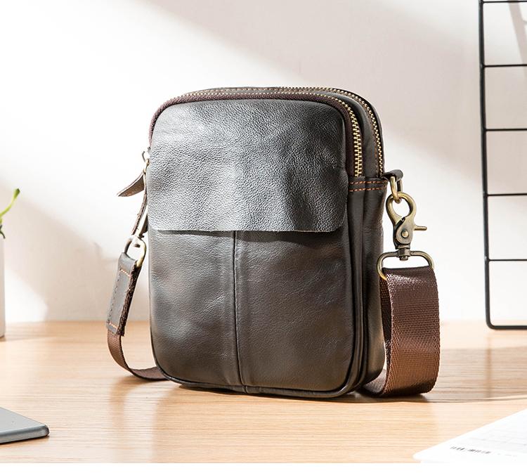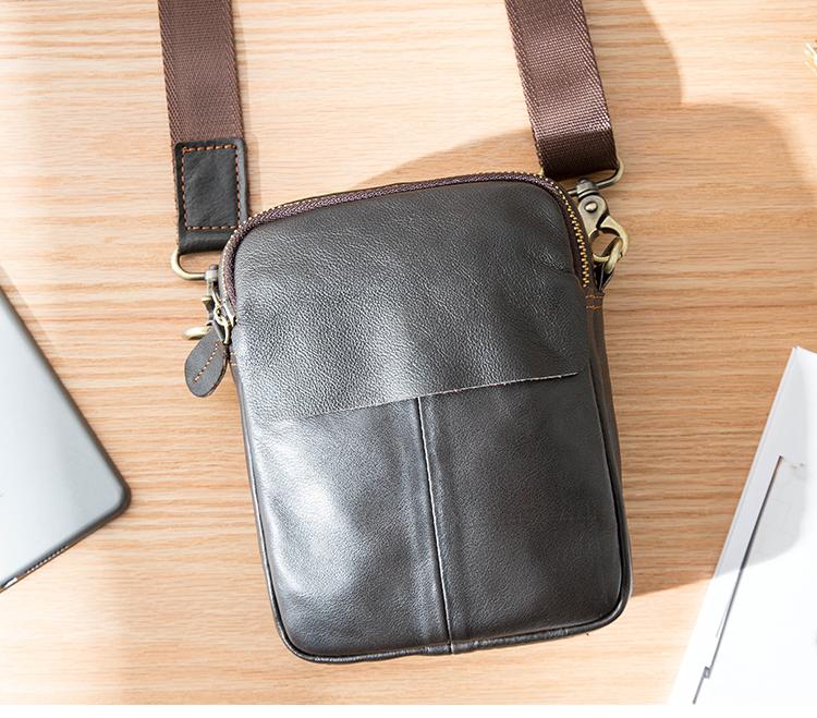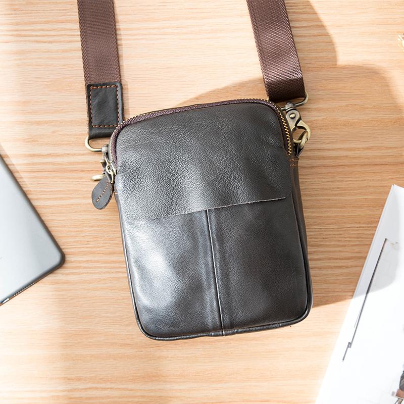 Design: Black Casual Leather Mens Vertical Side Bag Small Messenger Bags Chest Bag for Men
