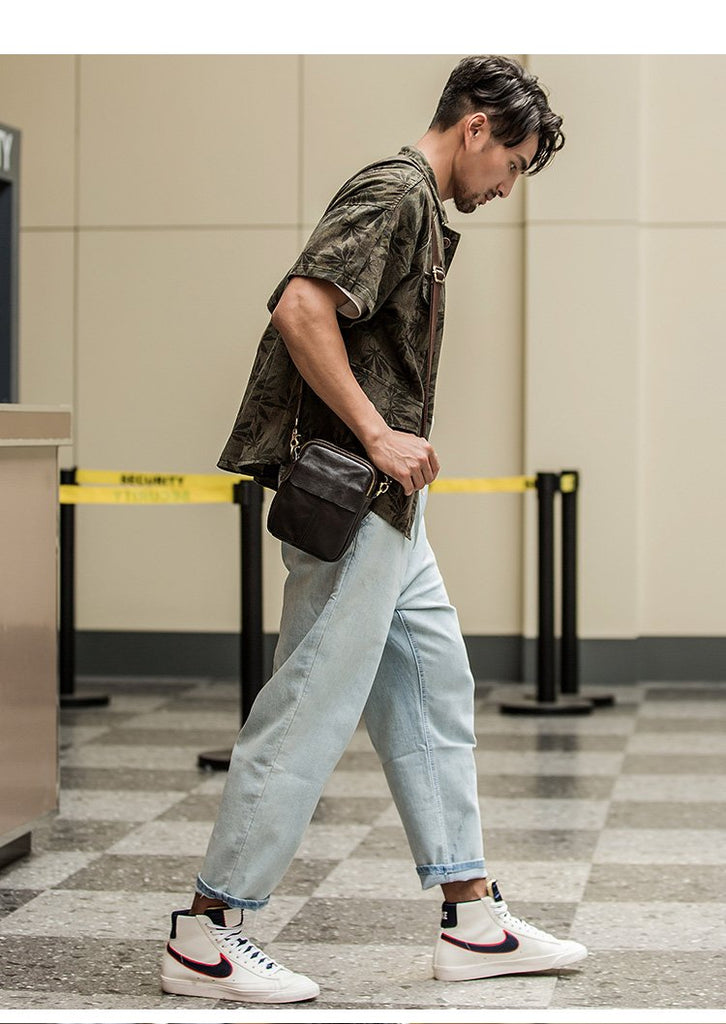 Style: Black Casual Leather Mens Vertical Side Bag Small Messenger Bags Chest Bag for Men