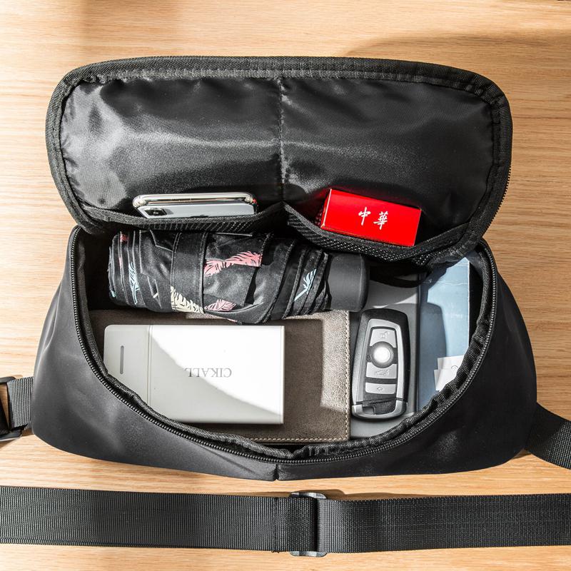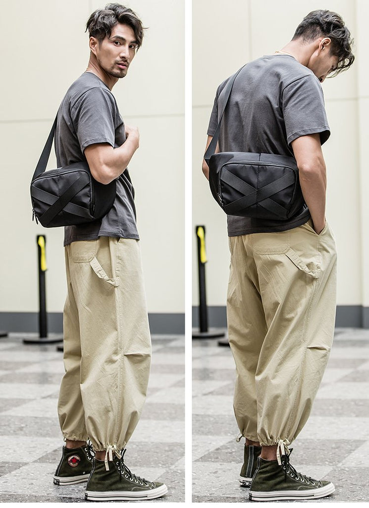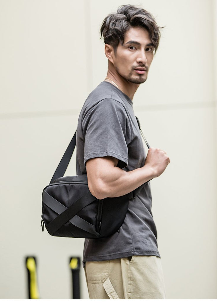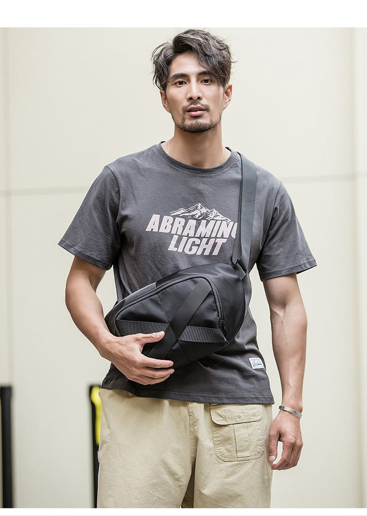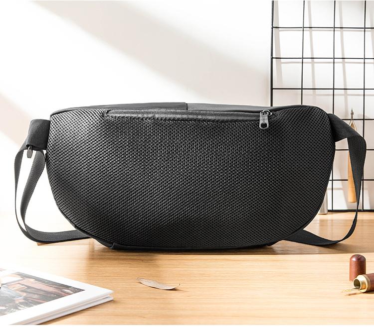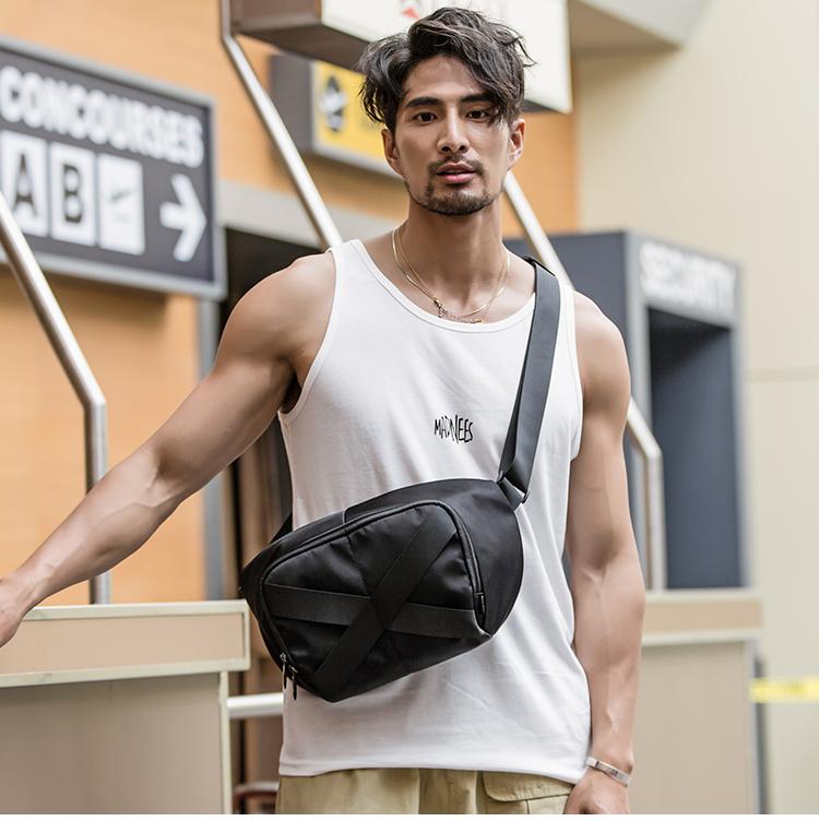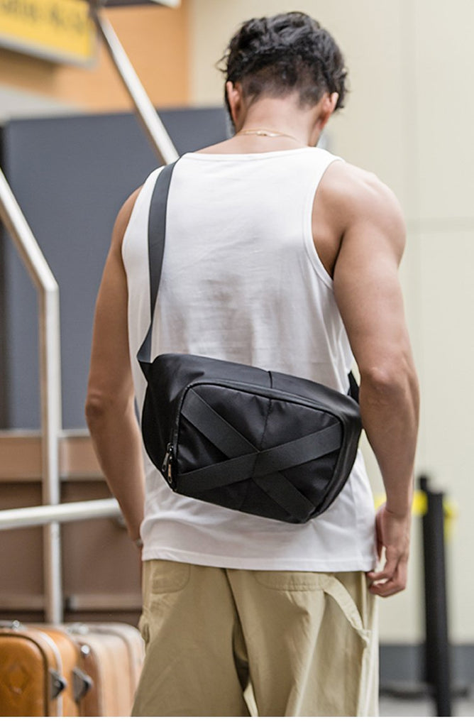 Design: Black Casual Mens 10 inches Chest Bag One Shoulder Backpack Black Messenger Bags Side Bag for Men