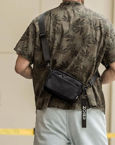 Style: Casual Black Mens NYLON Mini Chest Bag Postman Bag Black Small Messenger Bags Side Bag for Men