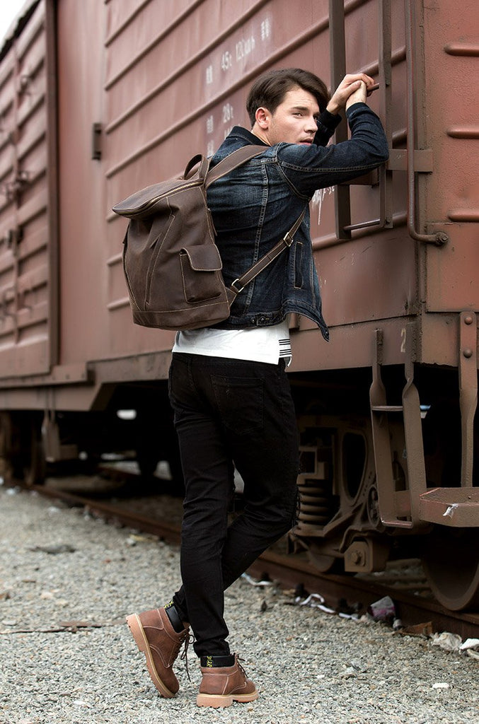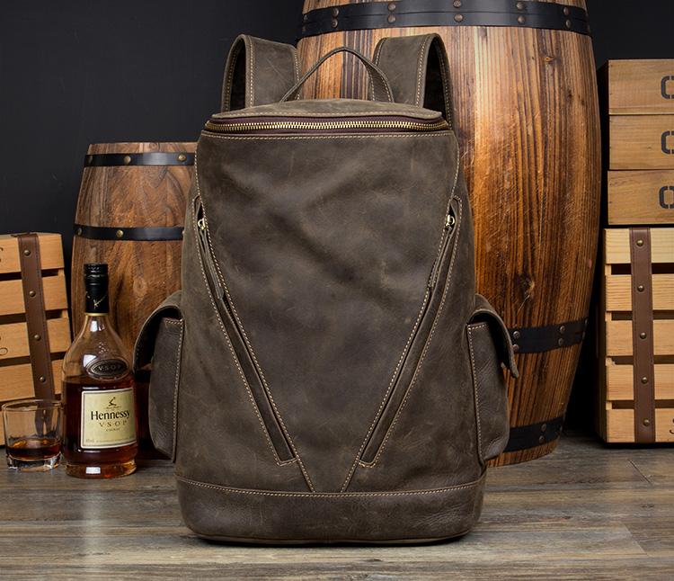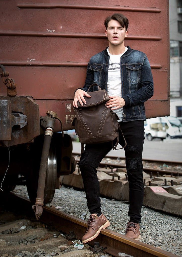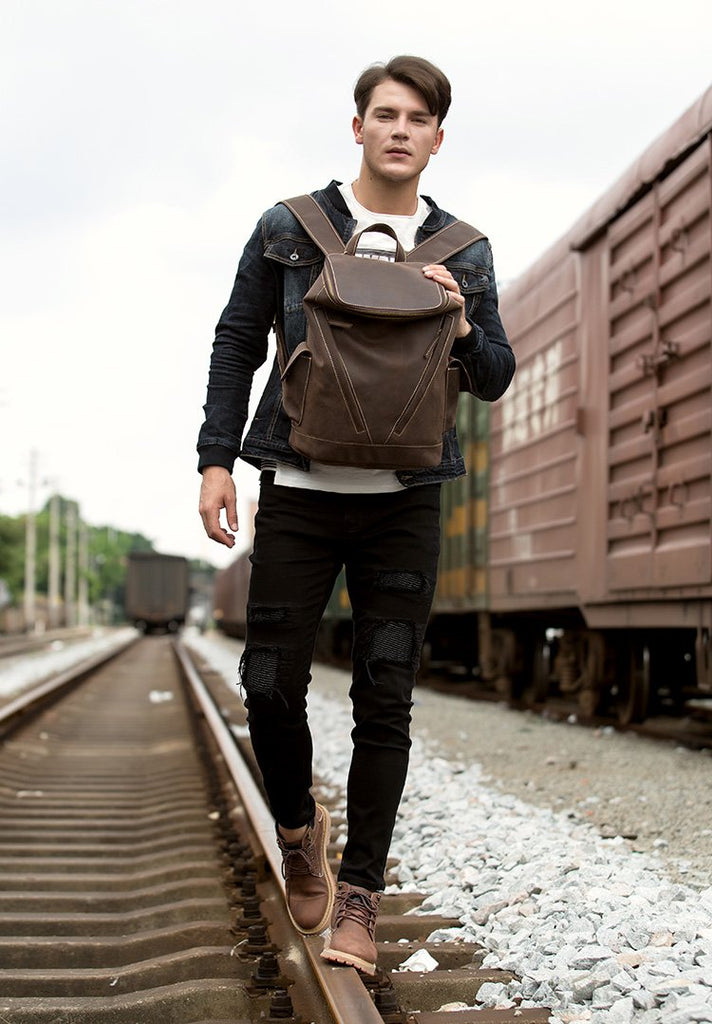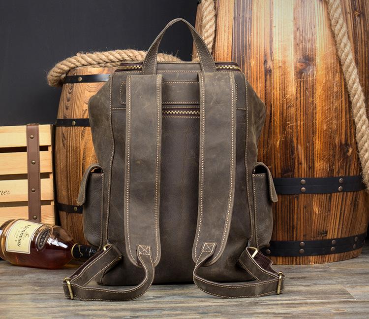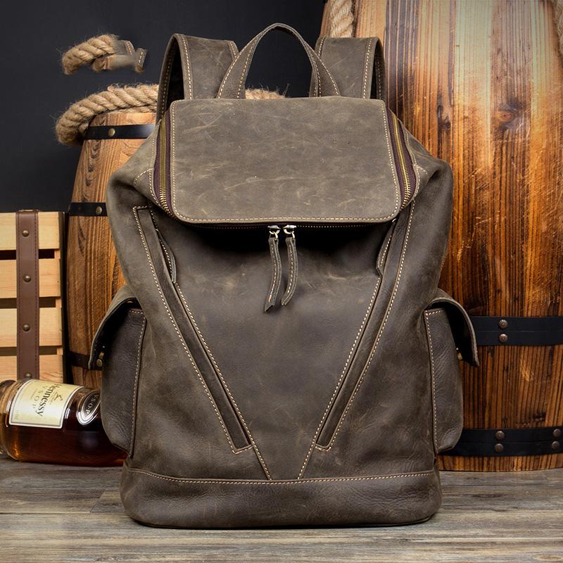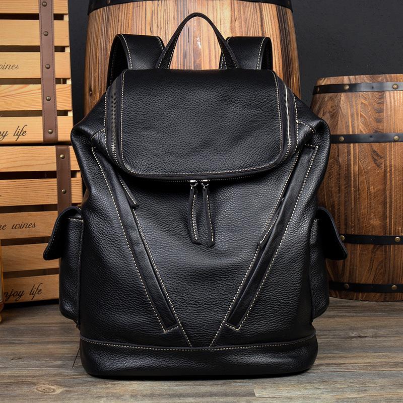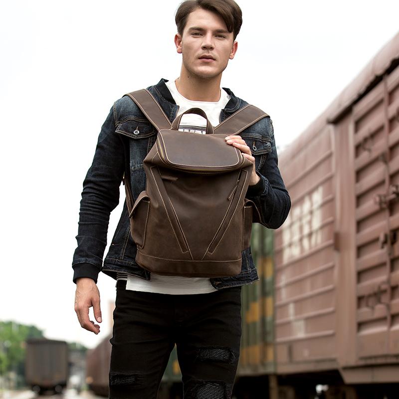 Design: Black Casual Mens Leather 14-inch Computer Backpacks Dark Brown Travel Backpack School Backpacks for men