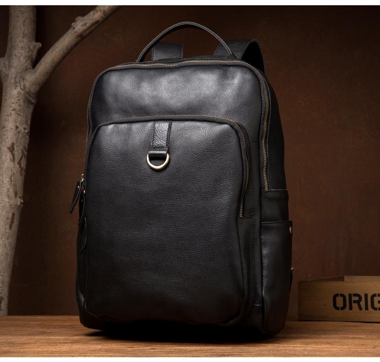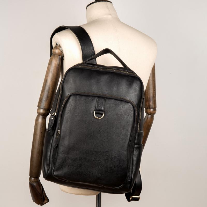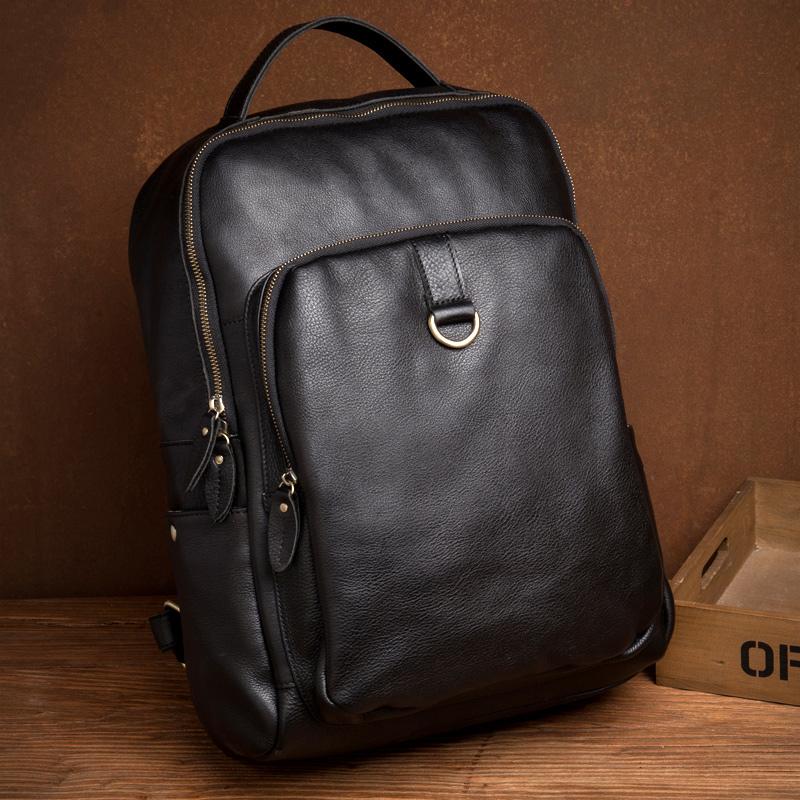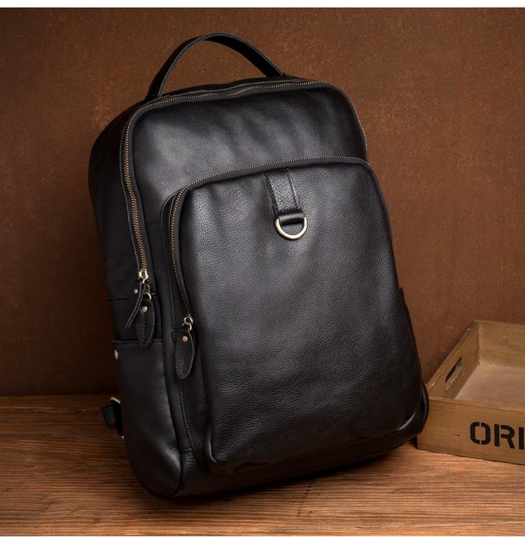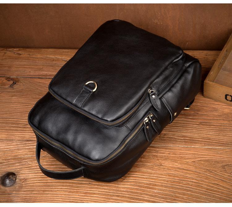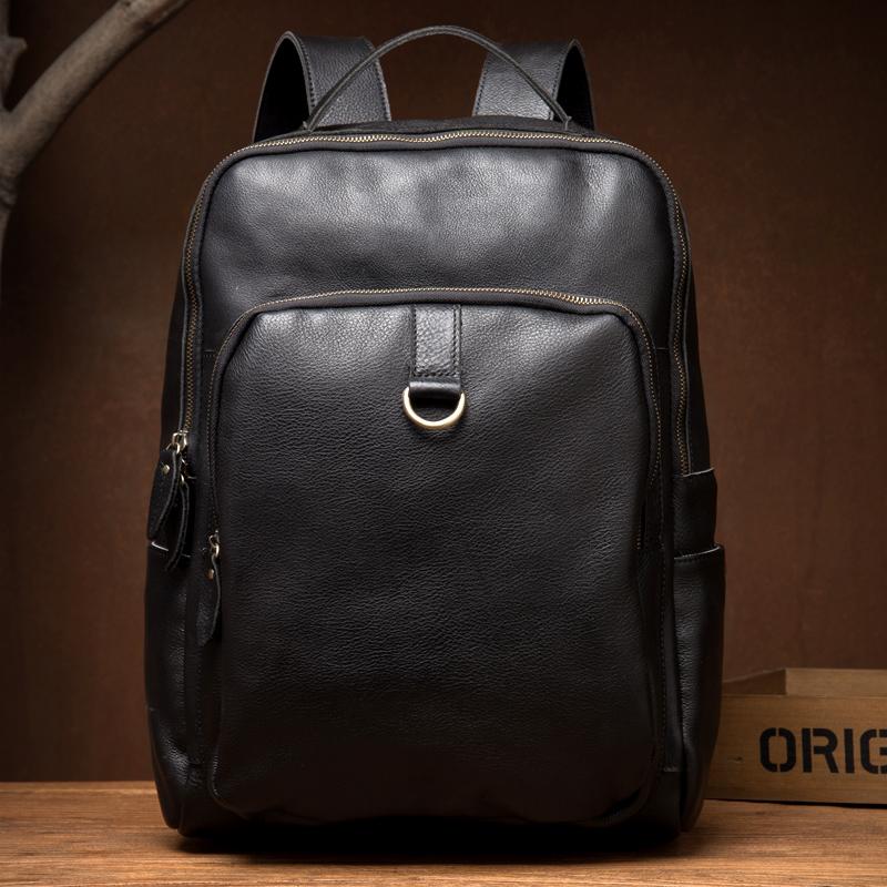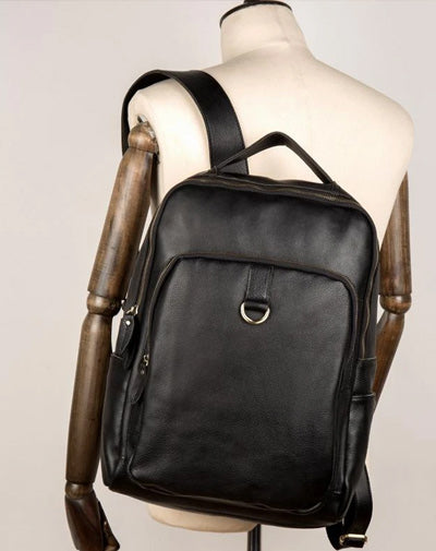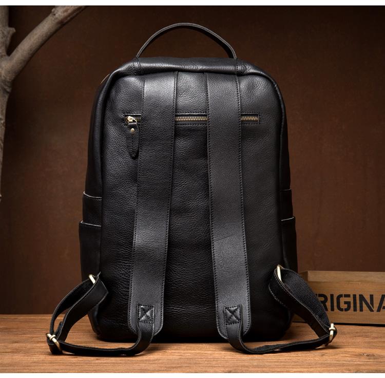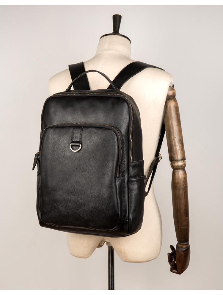 Style: Black Casual Mens Leather 15-inch Computer Backpack Dark Brown Travel Backpacks School Backpacks for men