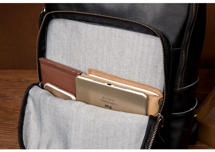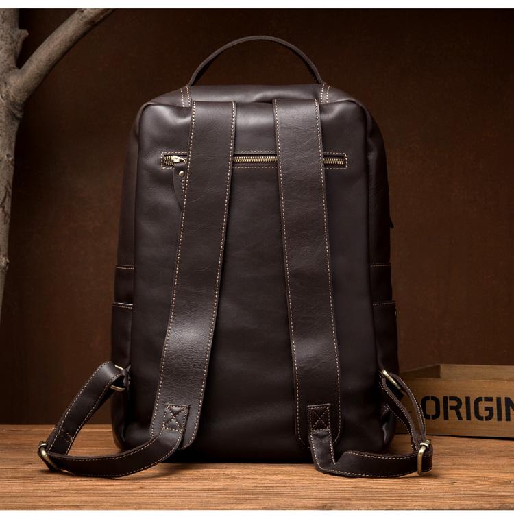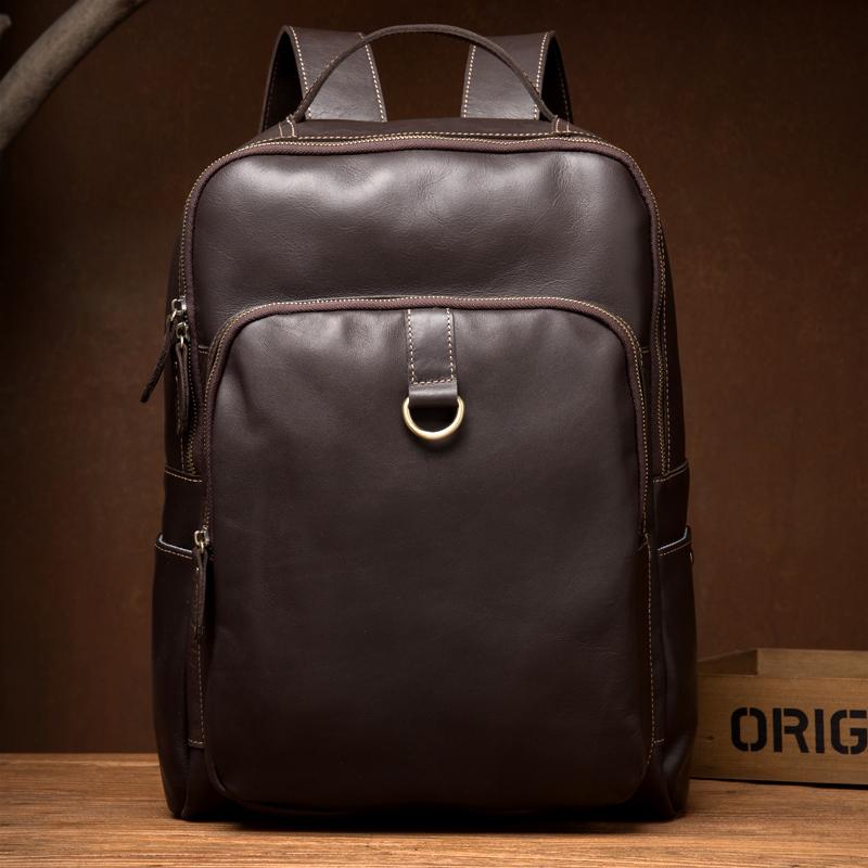 Design: Black Casual Mens Leather 15-inch Computer Backpack Dark Brown Travel Backpacks School Backpacks for men
