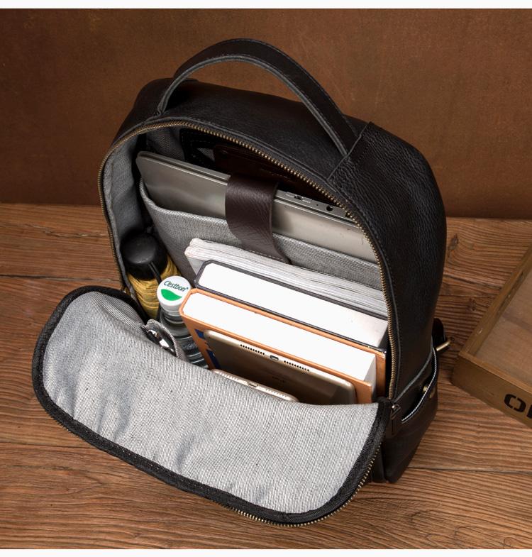 Casual Black Mens Leather 15-inch Computer Backpack Coffee Satchel Backpack School Backpacks for men