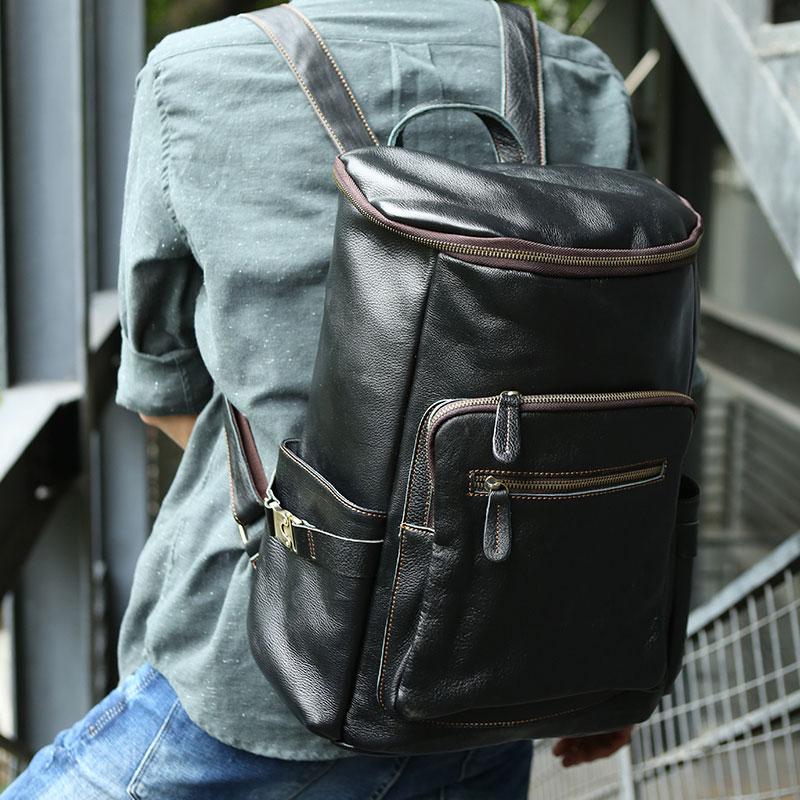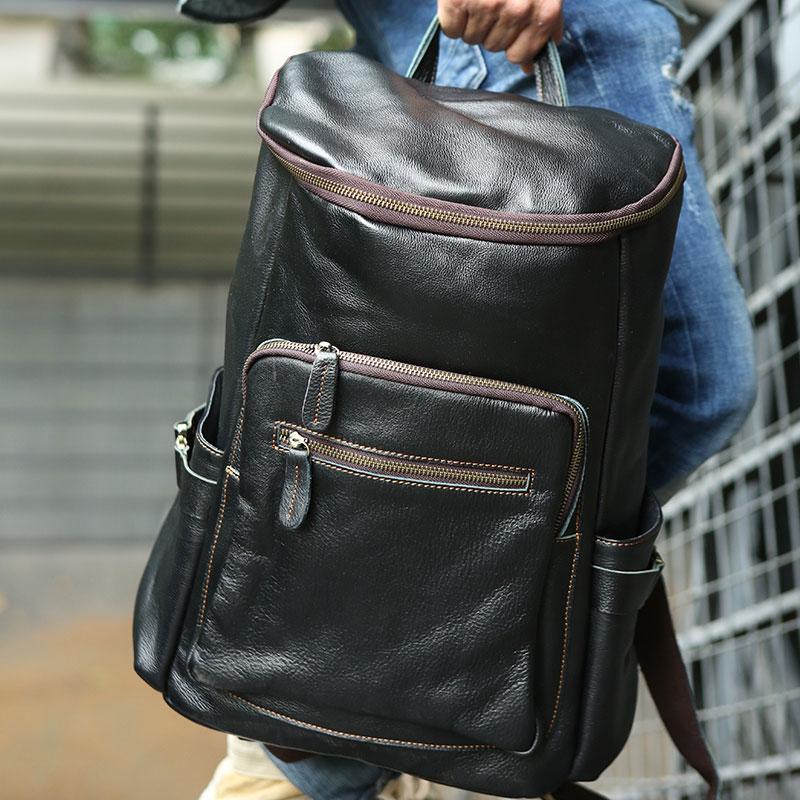 Design: Black Coffee Mens Leather Backpacks Travel Backpacks Laptop Backpack for men