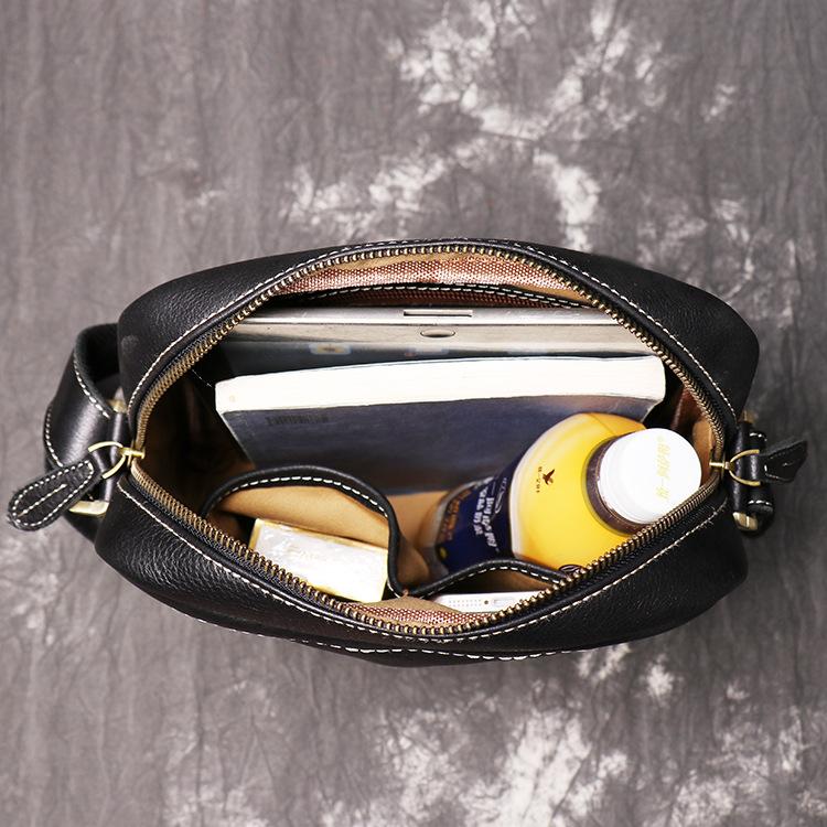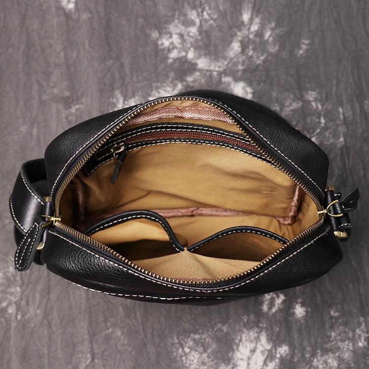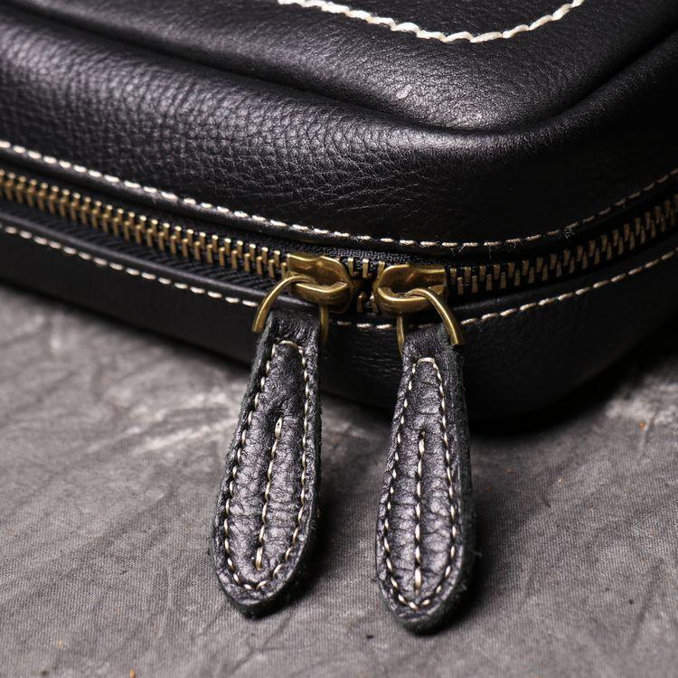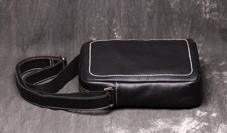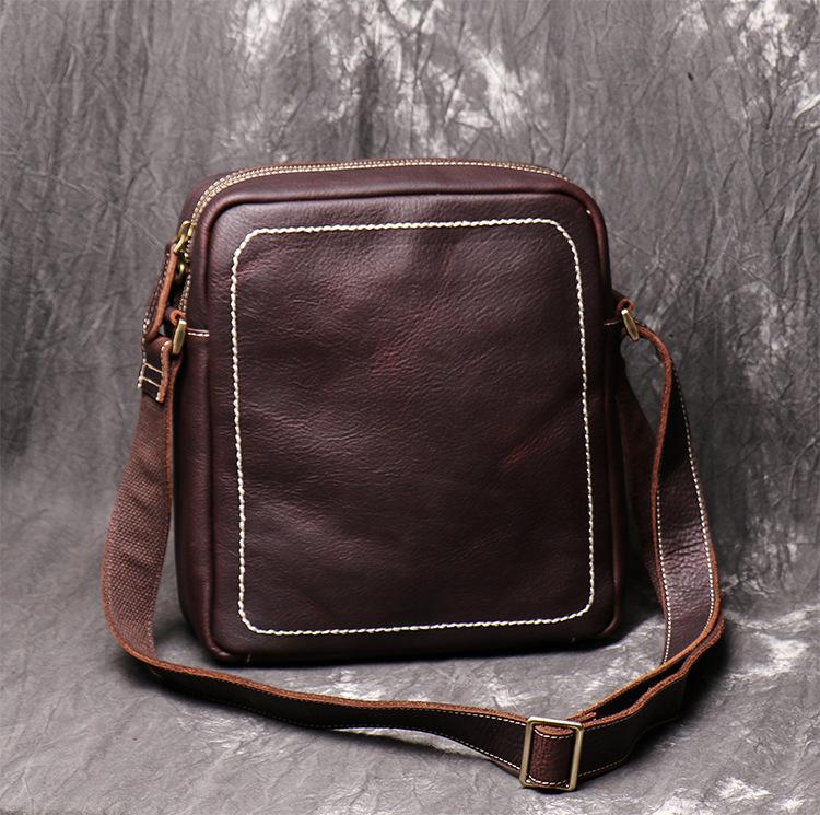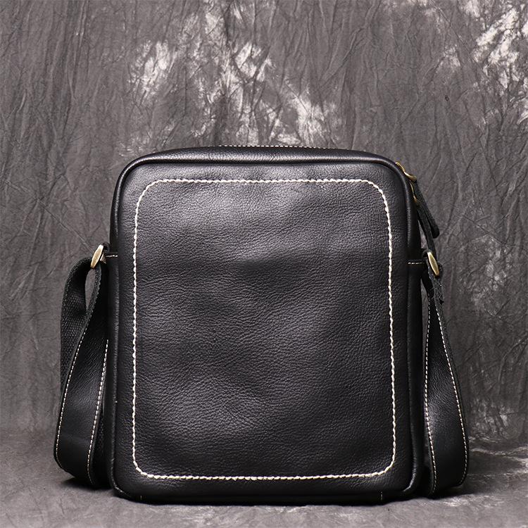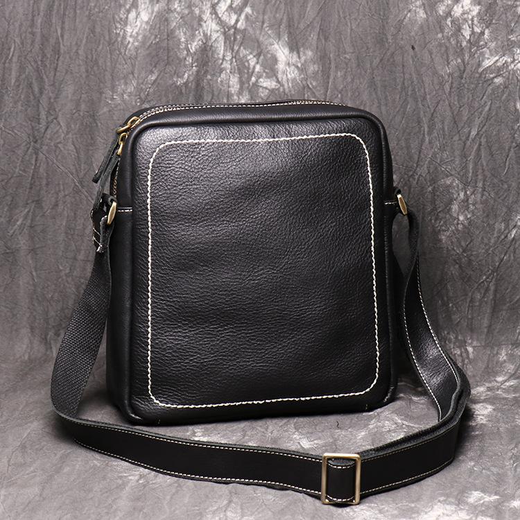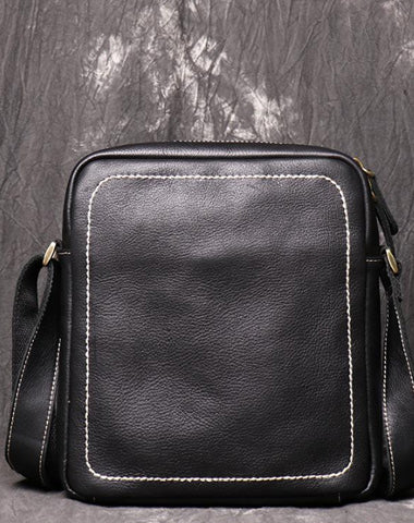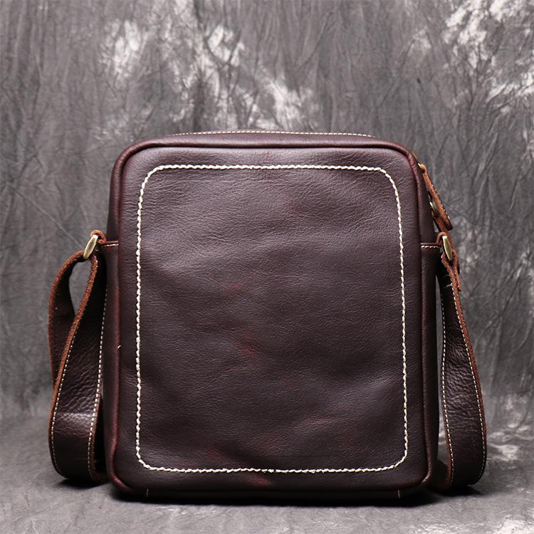 Design: Black Cool Leather 10 inches Small Zipper Messenger Bag Vertical Shoulder Bag Dark Brown Side Bag For MenOverview: