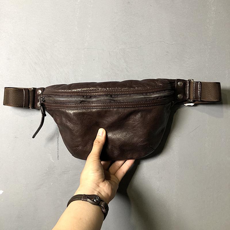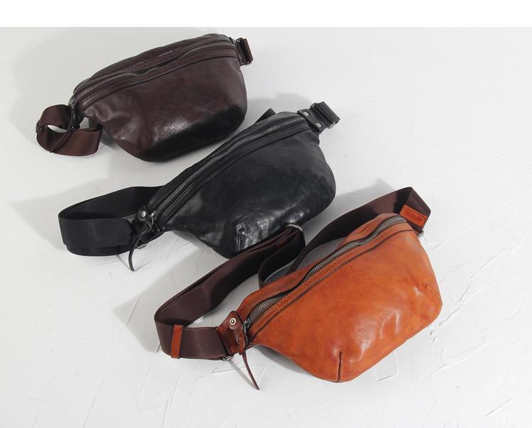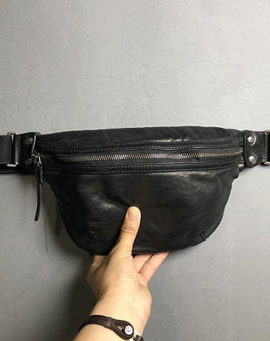 Style: Black Cool Leather Men 8 inches Fanny Pack Waist Bag Hip Pack Chest Bag Belt Bag Bumbag for Men