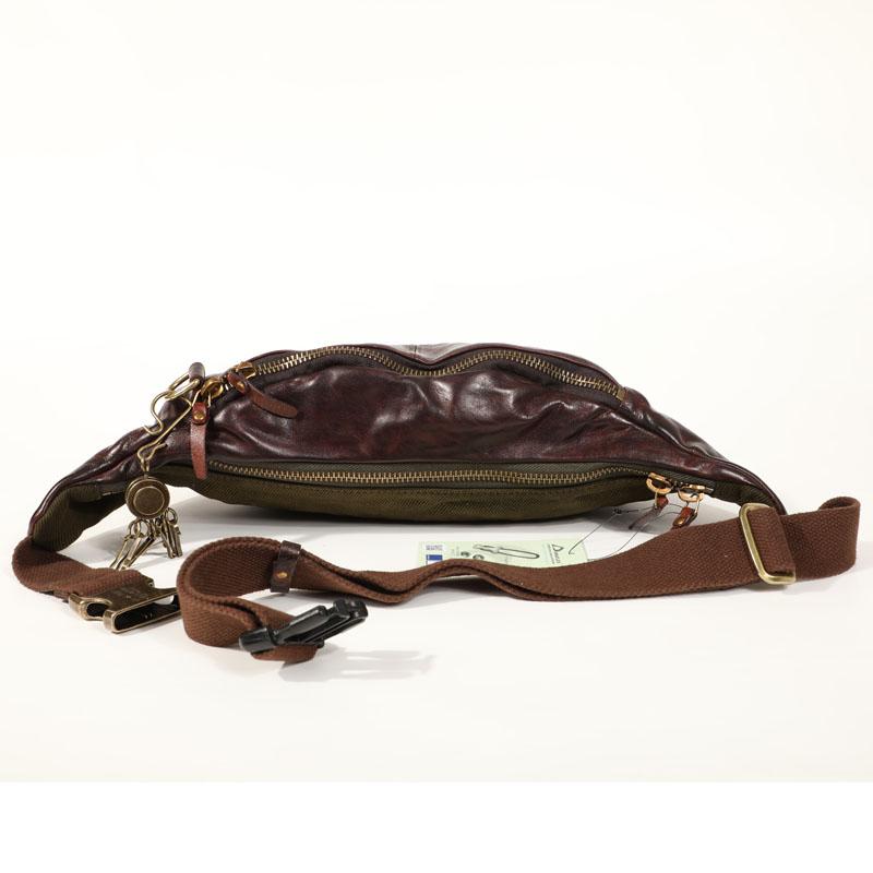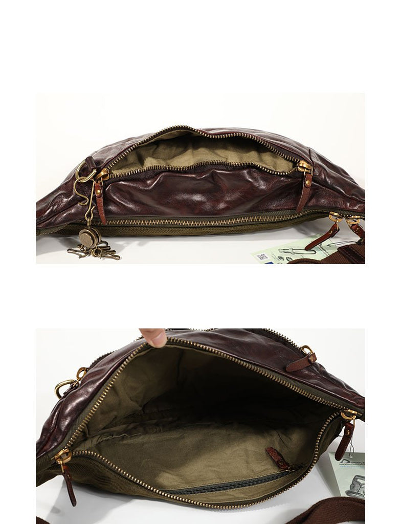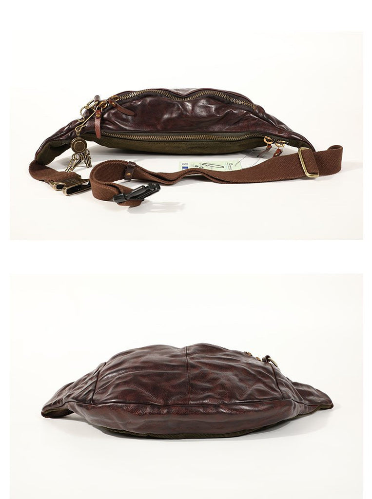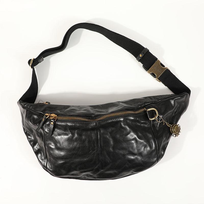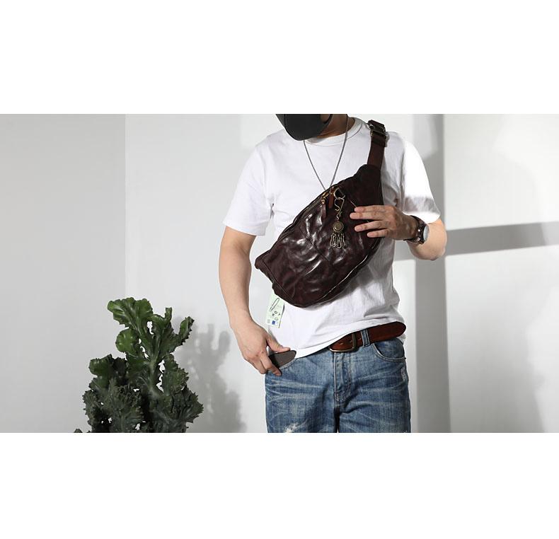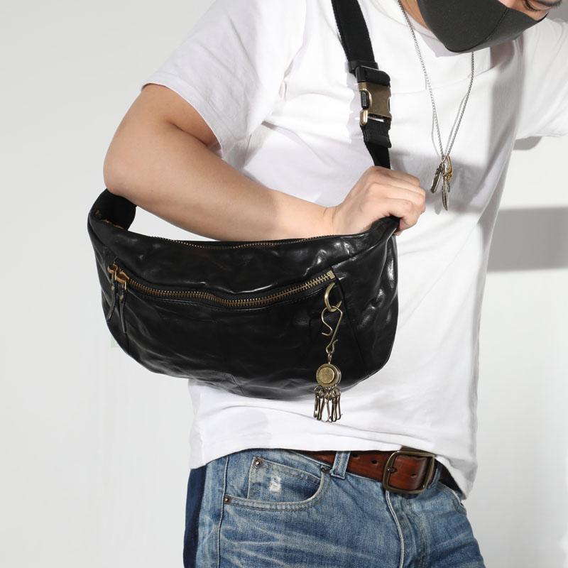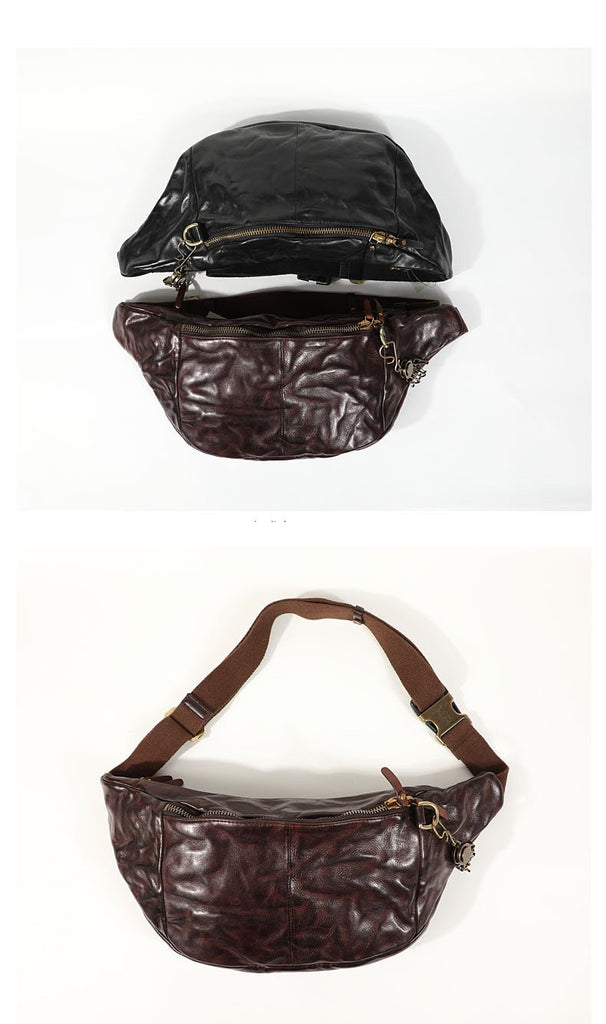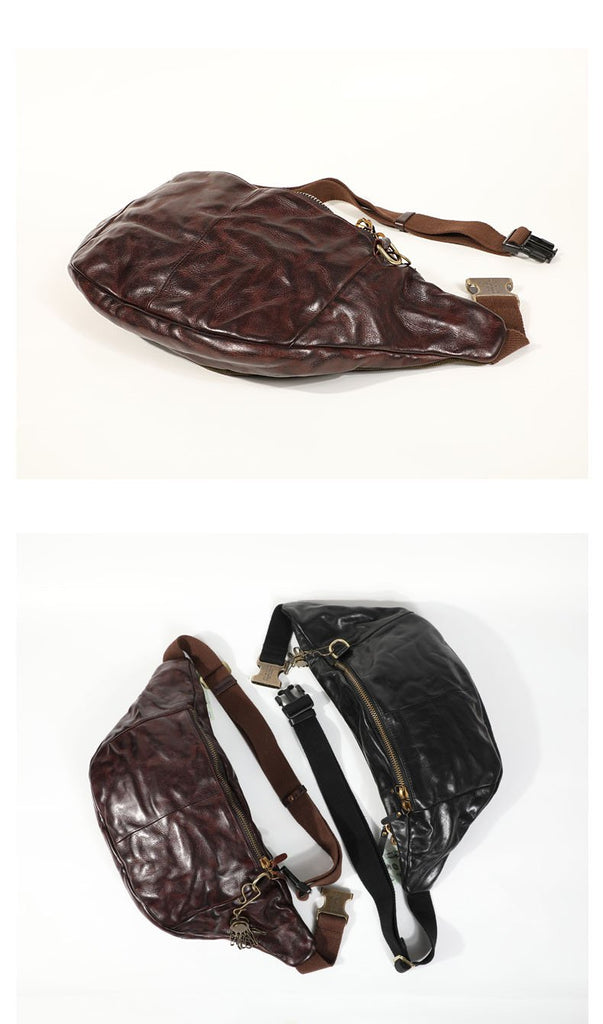 Design: Black Cool Leather Men Fanny Pack Waist Bag Hip Pack Chest Bag 10 inches Belt Bag Bumbag for Men