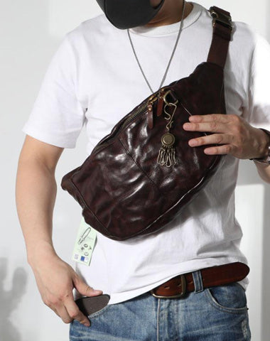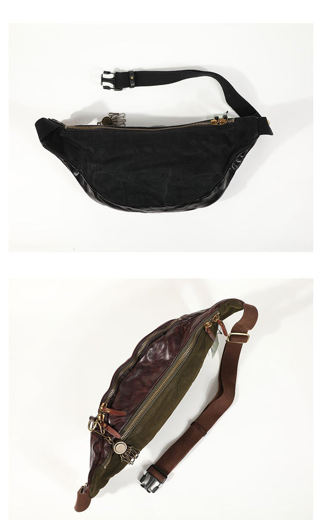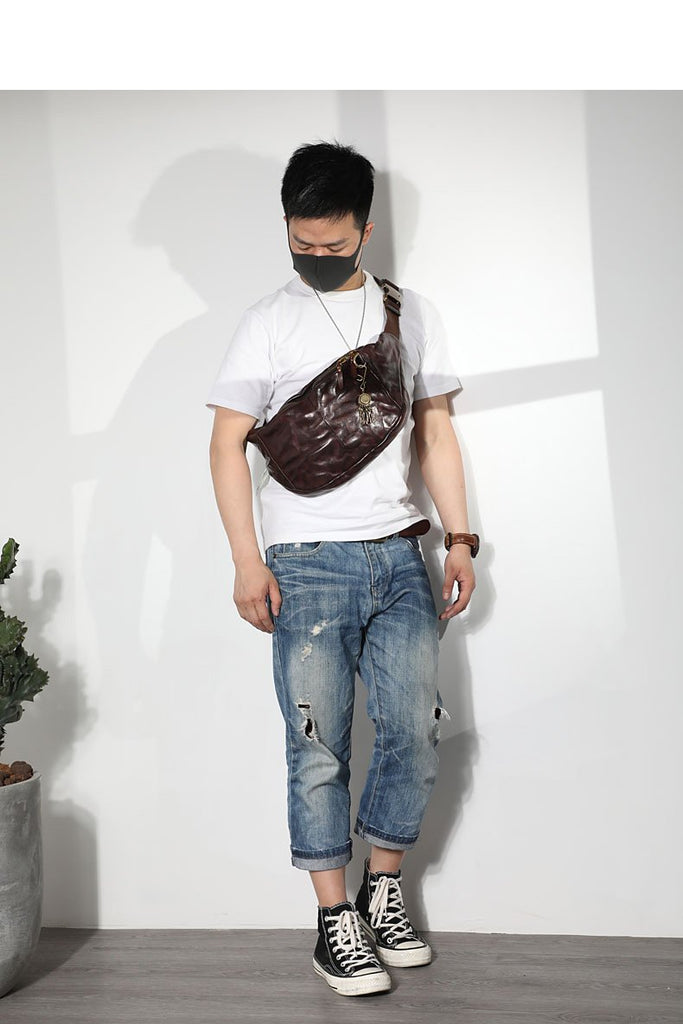 Style: Black Cool Leather Men Fanny Pack Waist Bag Hip Pack Chest Bag 10 inches Belt Bag Bumbag for Men