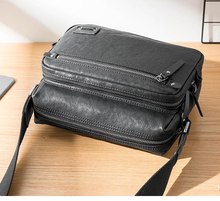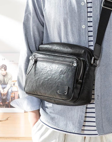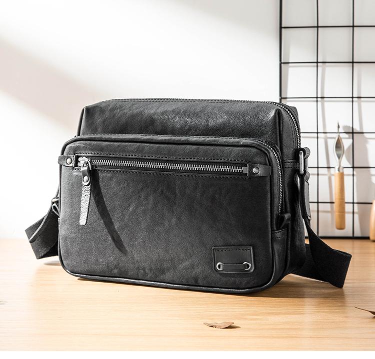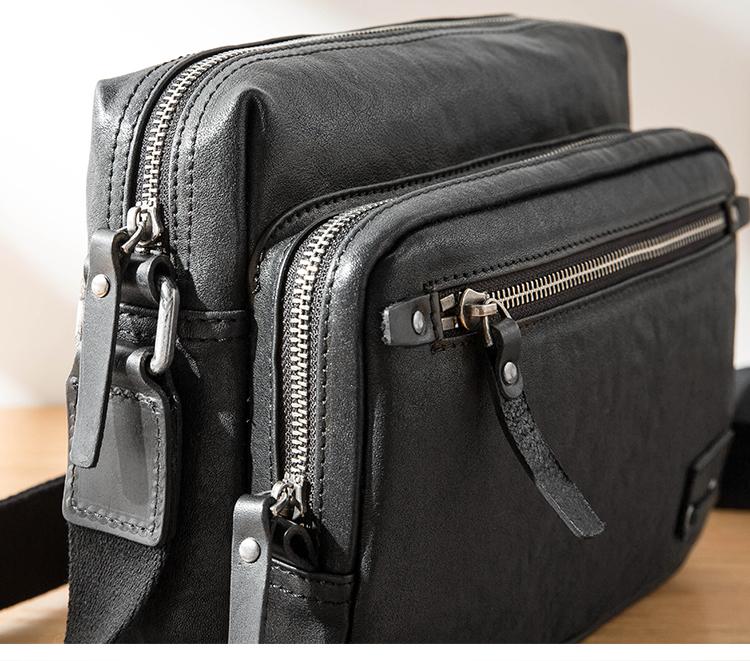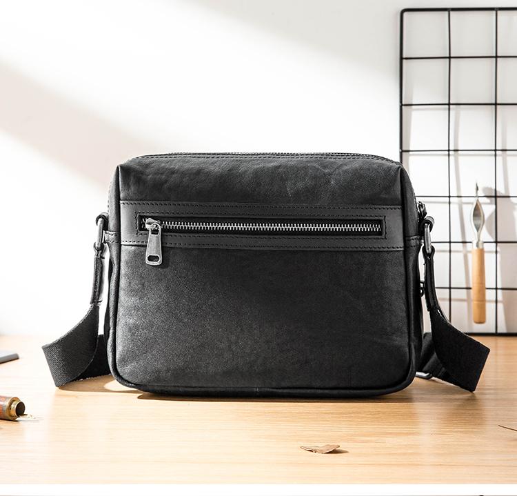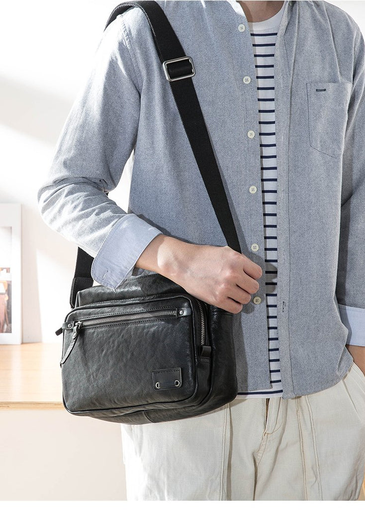 Design: Black Cool Leather Mens 10 inches Large Messenger Bags Business Shoulder Bags for Men