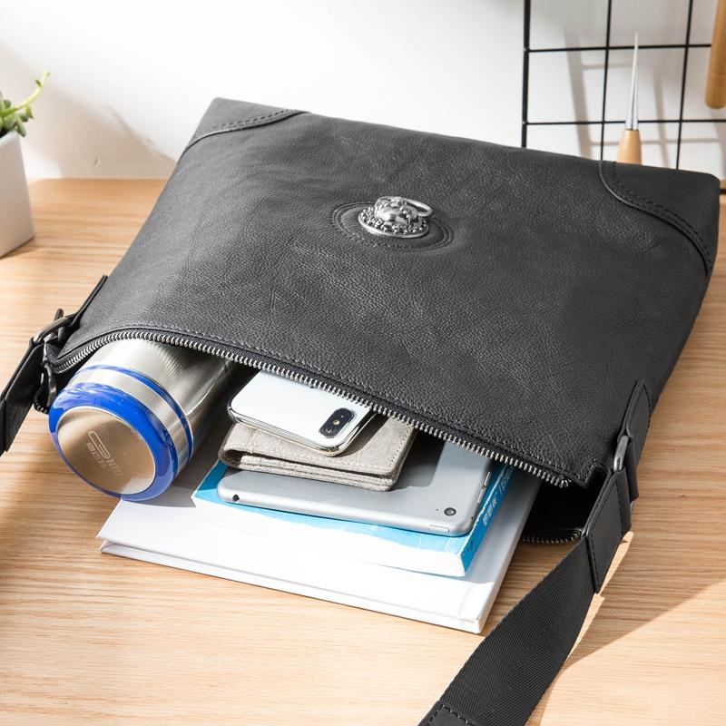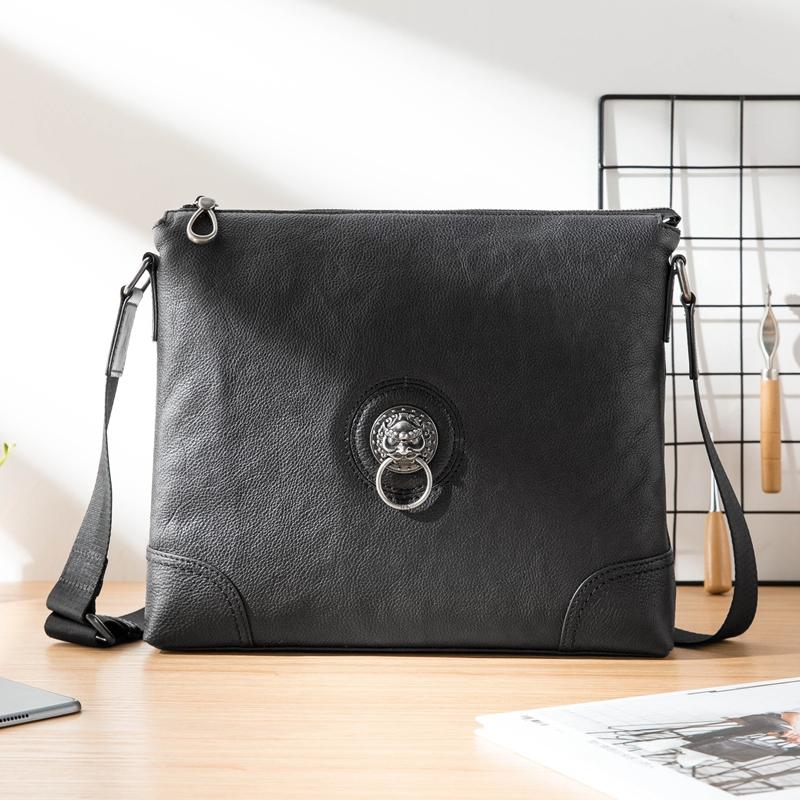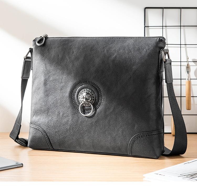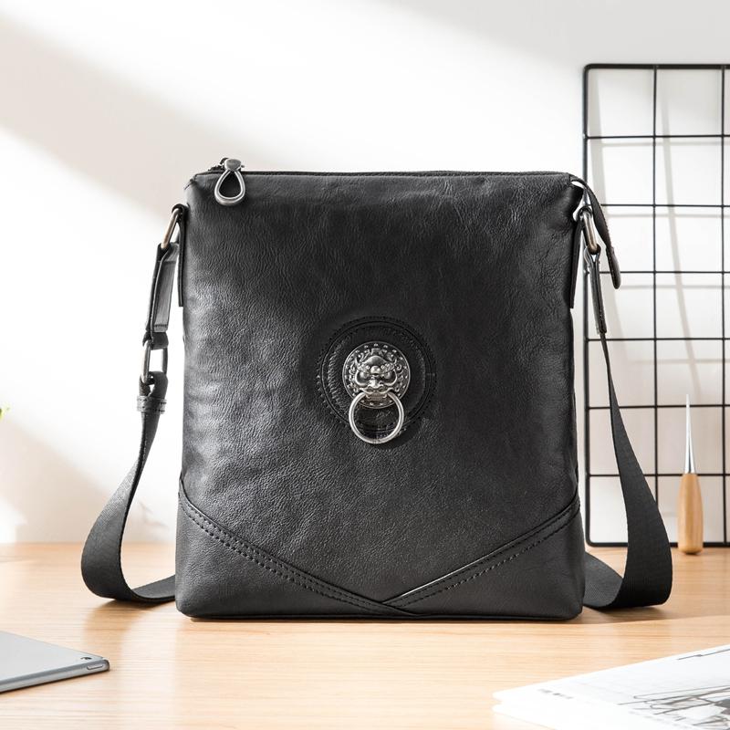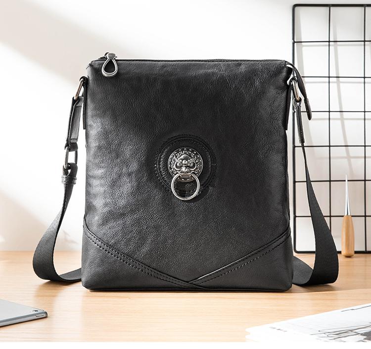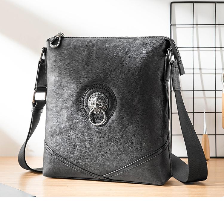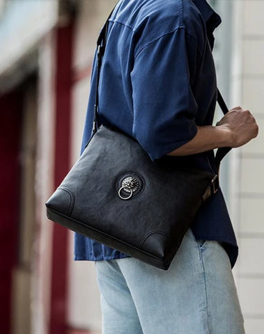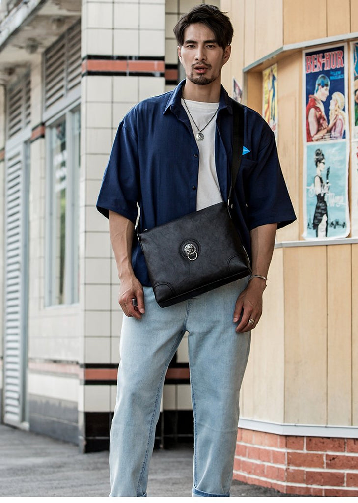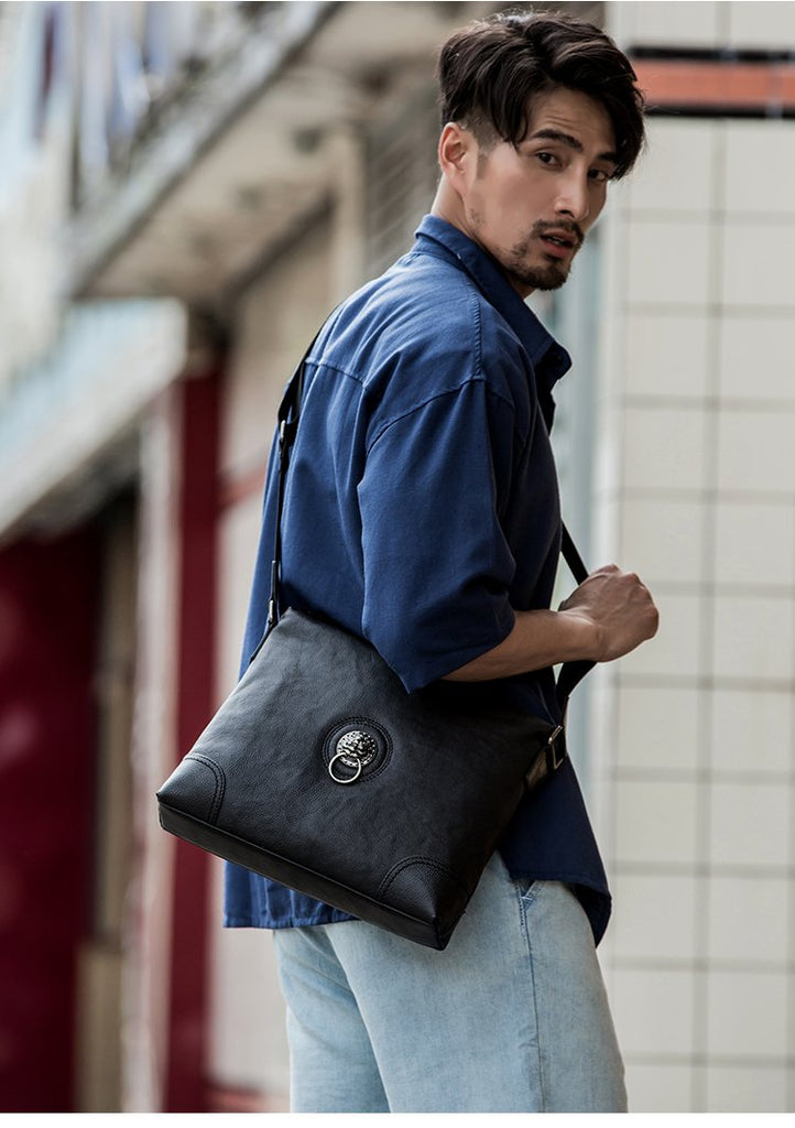Design: Black Cool Leather Mens 10 inches Vertical Courier Bag Postman Bag Black Cross Messenger Bags Side Bag for Men