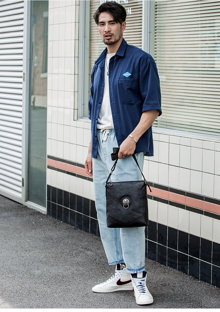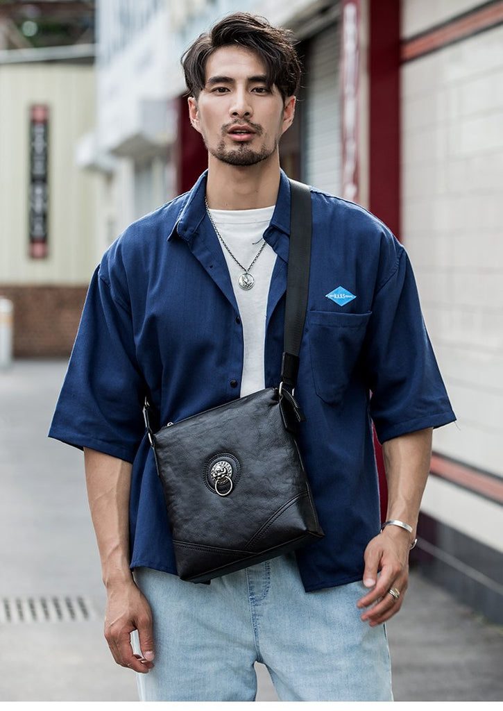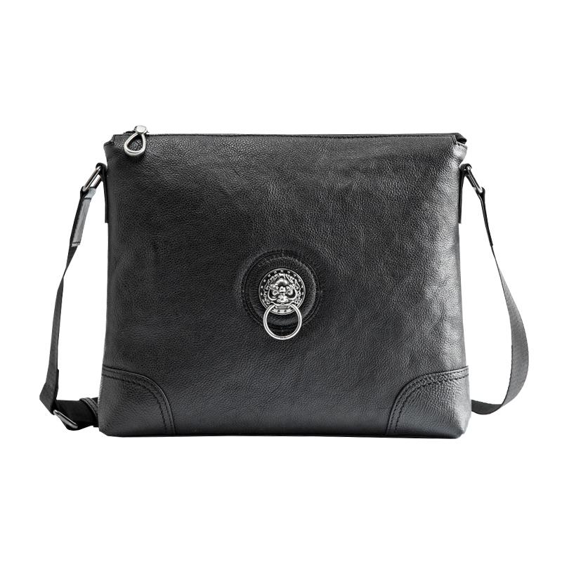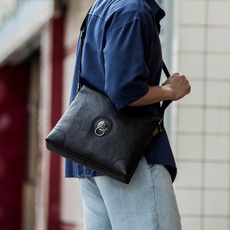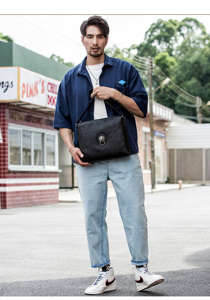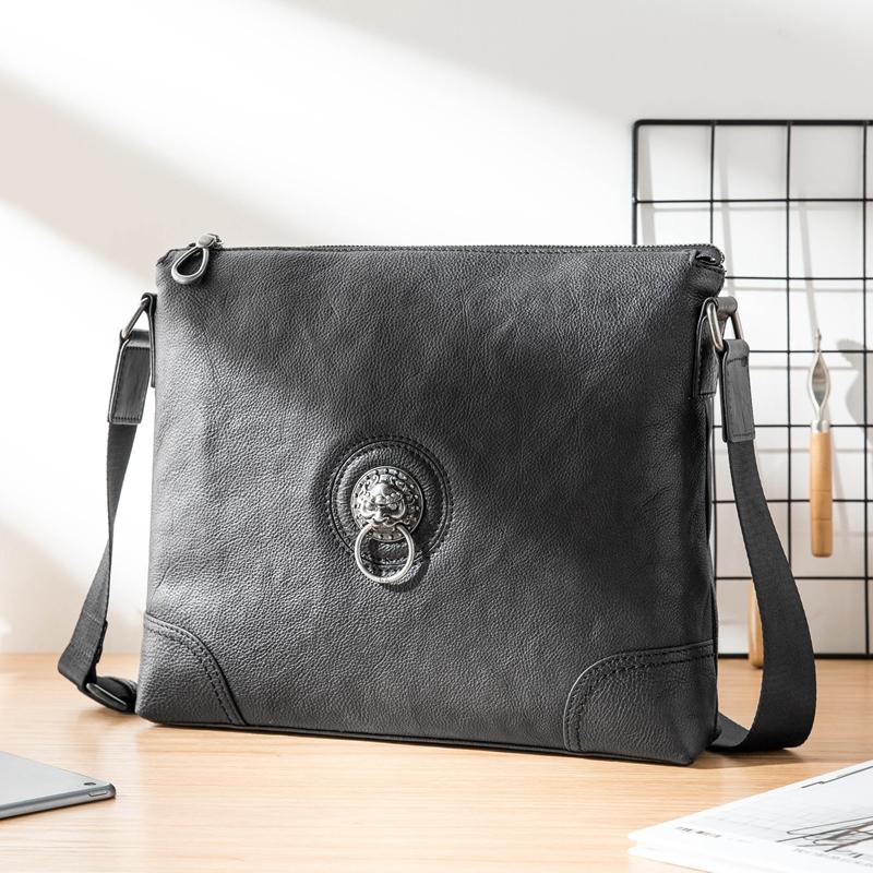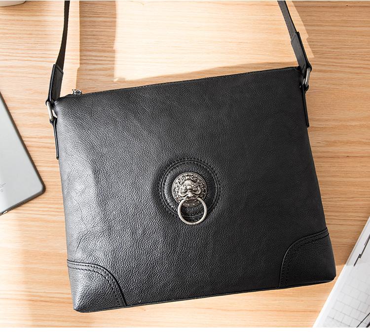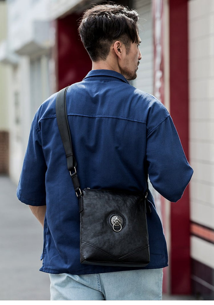 Design: Black Cool Leather Mens 10 inches Vertical Courier Bag Postman Bag Black Cross Messenger Bags Side Bag for Men