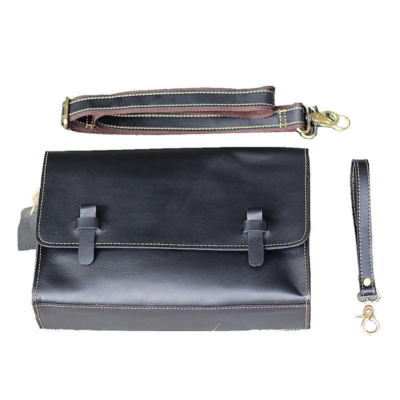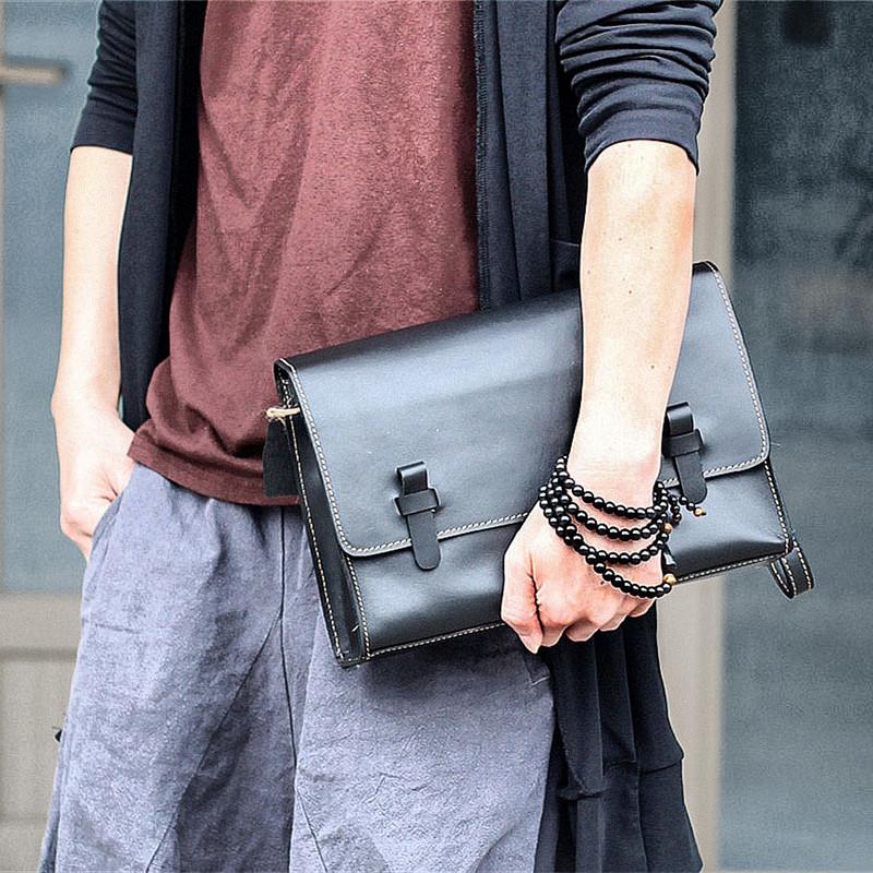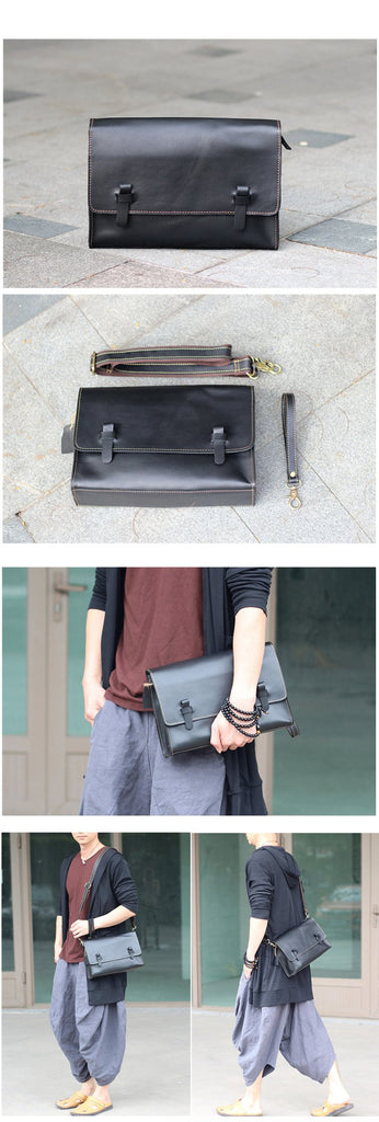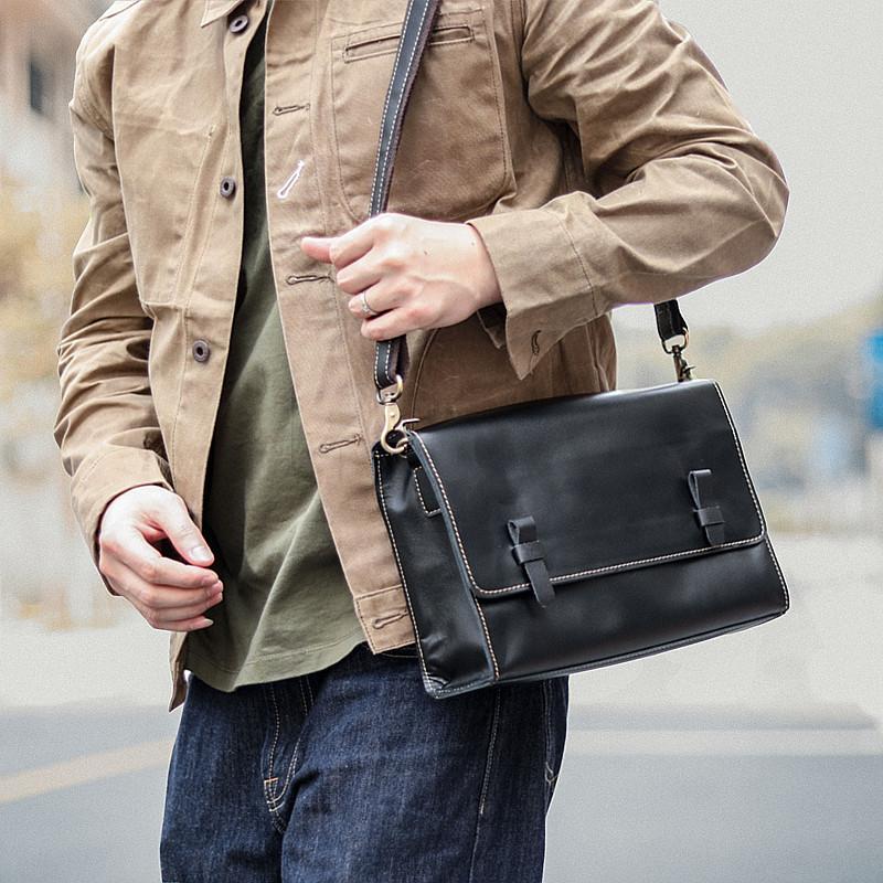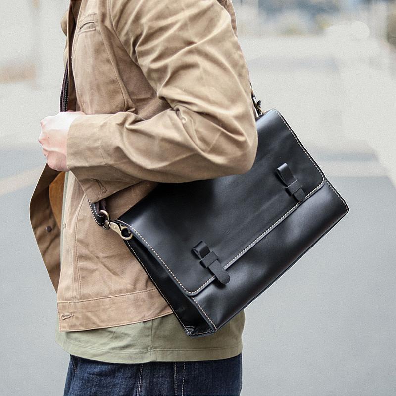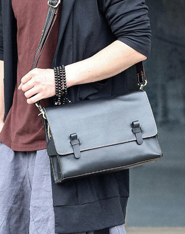 Design: Black Cool Leather Mens 10" Postman Bag Messenger Bag Black Courier Bags For Men